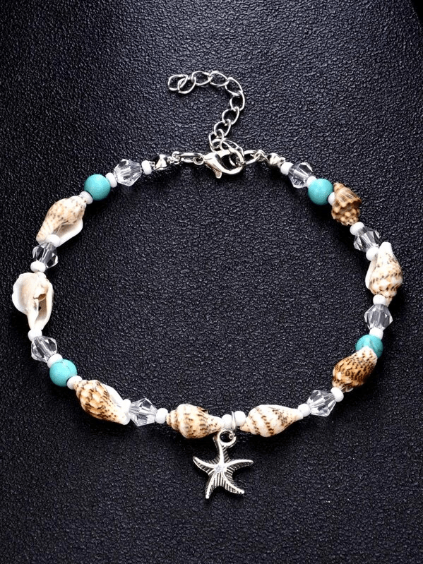 Multi Beads and Shell Mix Anklet Ankle Bracelet - Starfish by Fashion Hut Jewelry