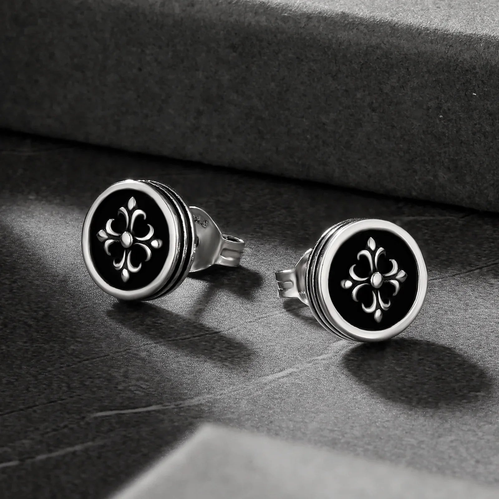 9mm Black Stud Earrings - Cross Fleur-de-lis Lily flower by Bling Proud
