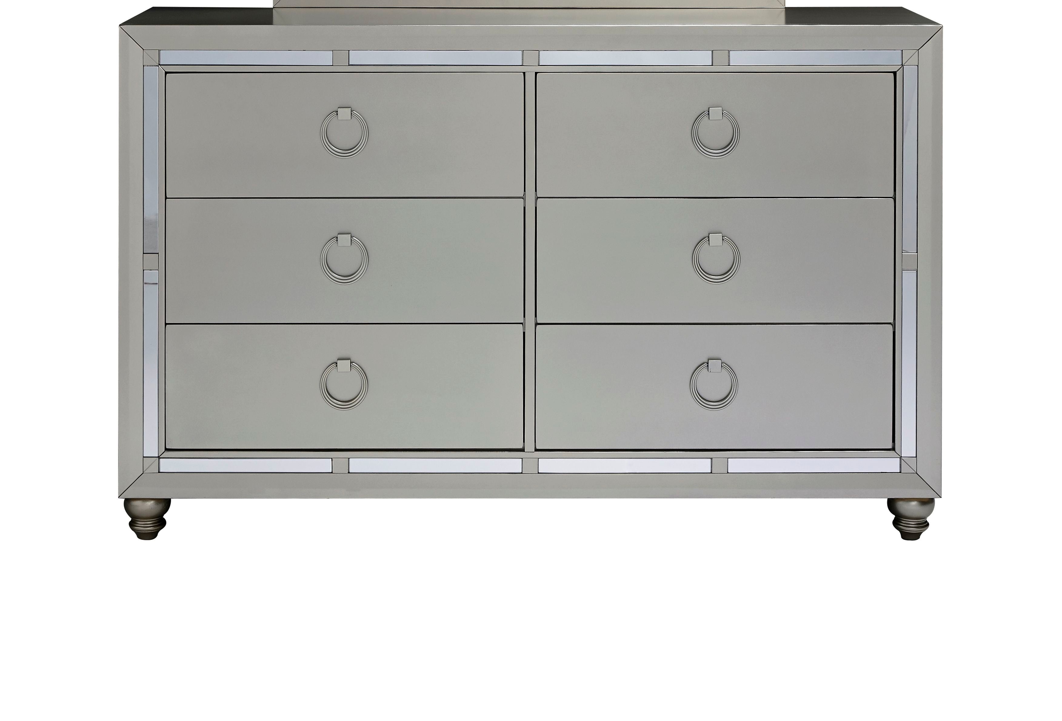 - Elegant Design: The CHLOE GEMSTONE SILVER DRESSER features mirror accents and a classic bun foot design, offering a sophisticated and stylish look for any bedroom.