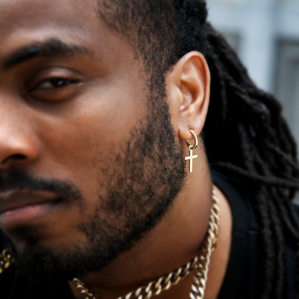 Cross Hoop Earrings for Men in 925 Sterling Silver by Bling Proud