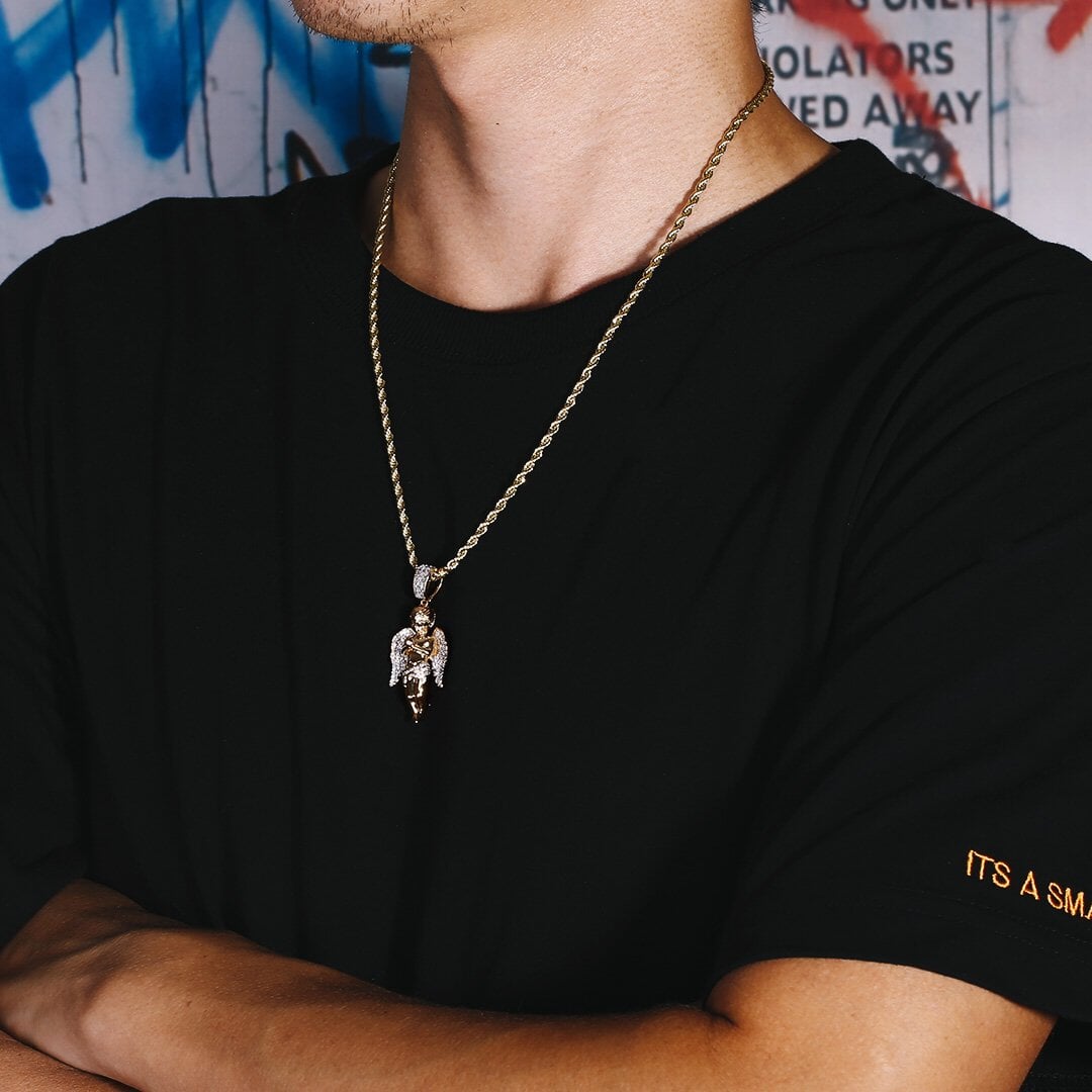 Iced Angel Pendant 14K Gold Plated by Bling Proud