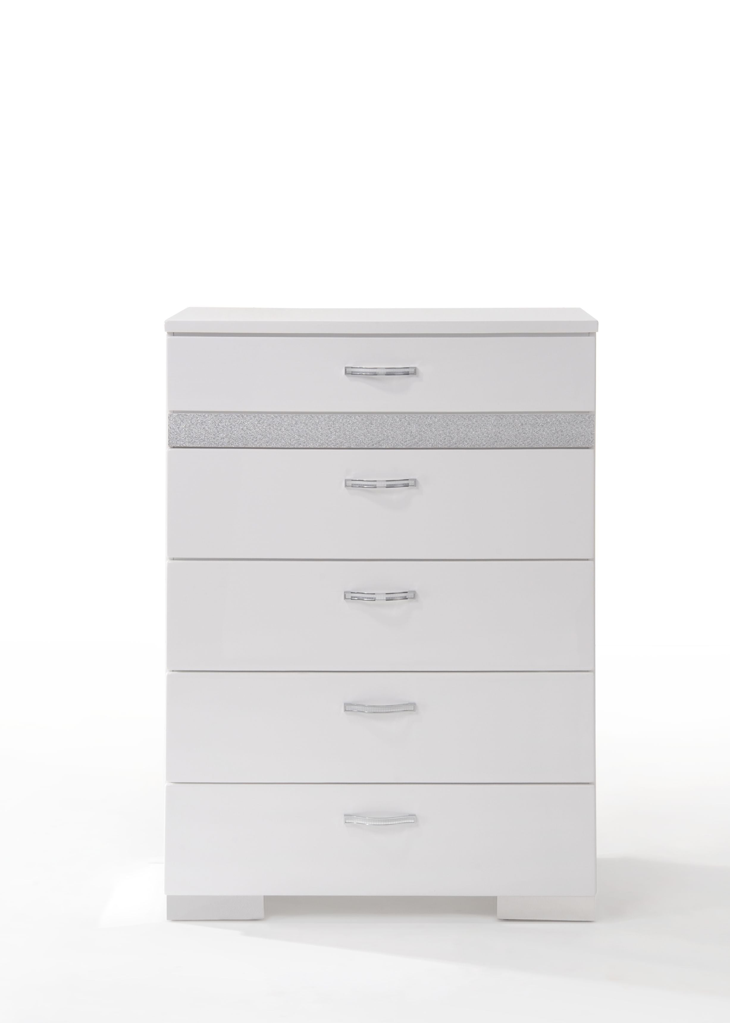 - Elegant Accents: Glittery accents on the drawer fronts add a touch of elegance, while modern metal handles provide a comfortable grip and contribute to the chic design.