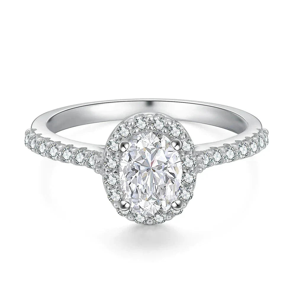Oval Cut Moissanite Diamond Paved Halo Ring for Women by Bling Proud