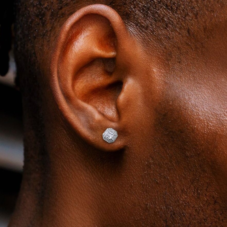 Fulfilled by our friends at Bling Proud | Urban Jewelry Online Store These earrings feature an emerald cut diamond, with outer part fully iced with high-quality CZ diamond stones. Made of sterling silver, they're classy, allergy-safe, and perfect for any occasion. 925 sterling silver with 5 times gold plating Safe...