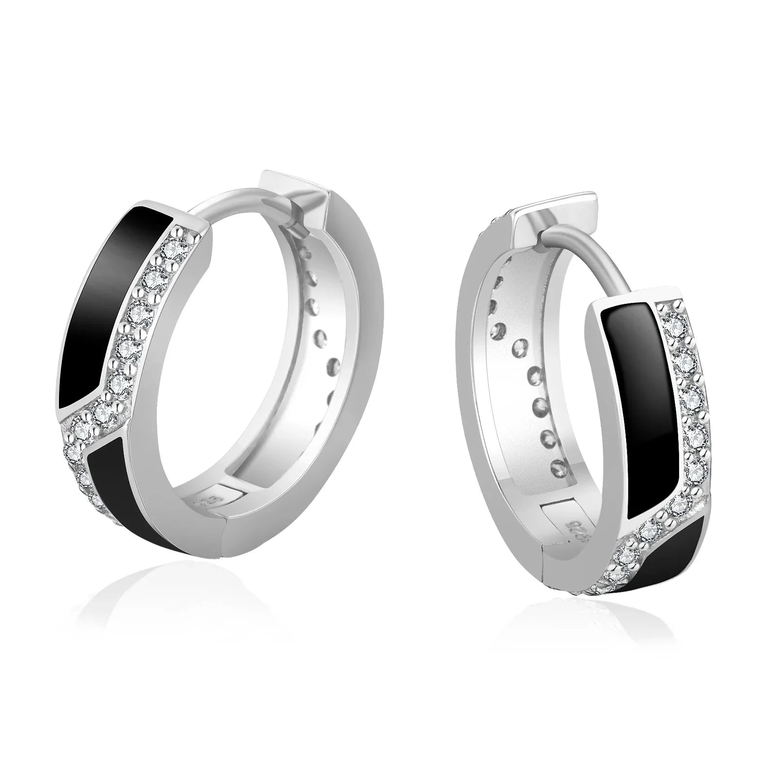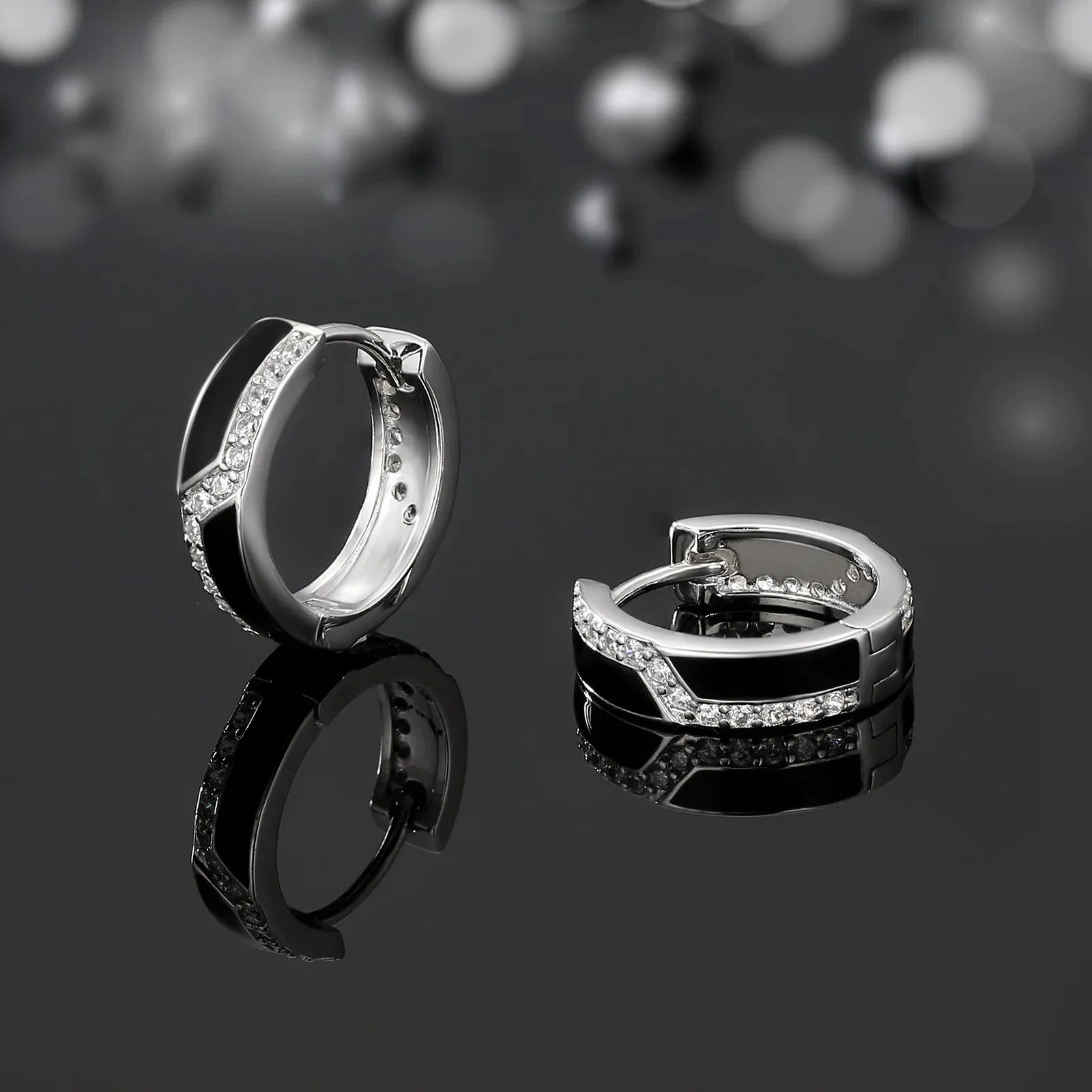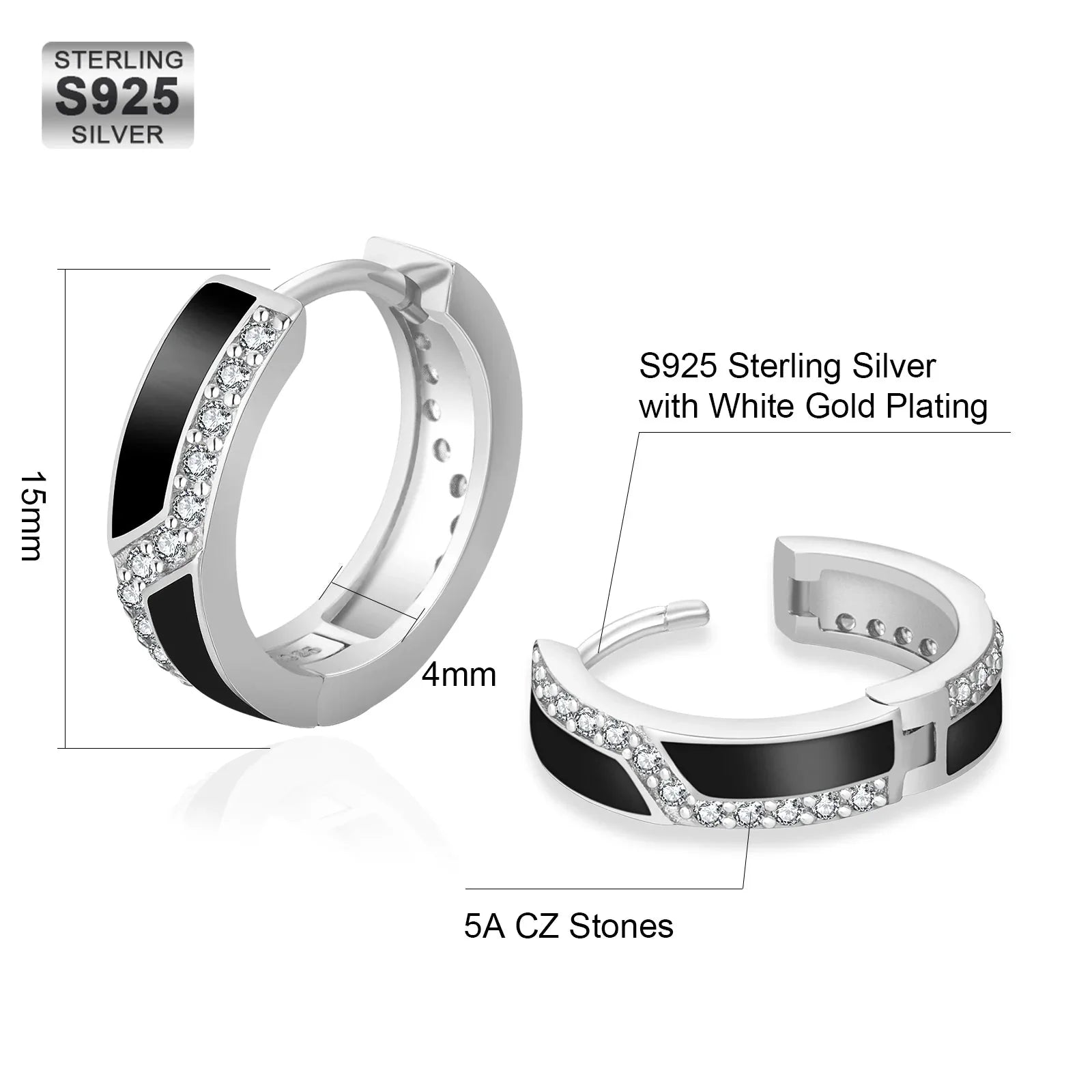 S925 Silver Iced Black Hoop Earrings in White Gold - 15mm by Bling Proud