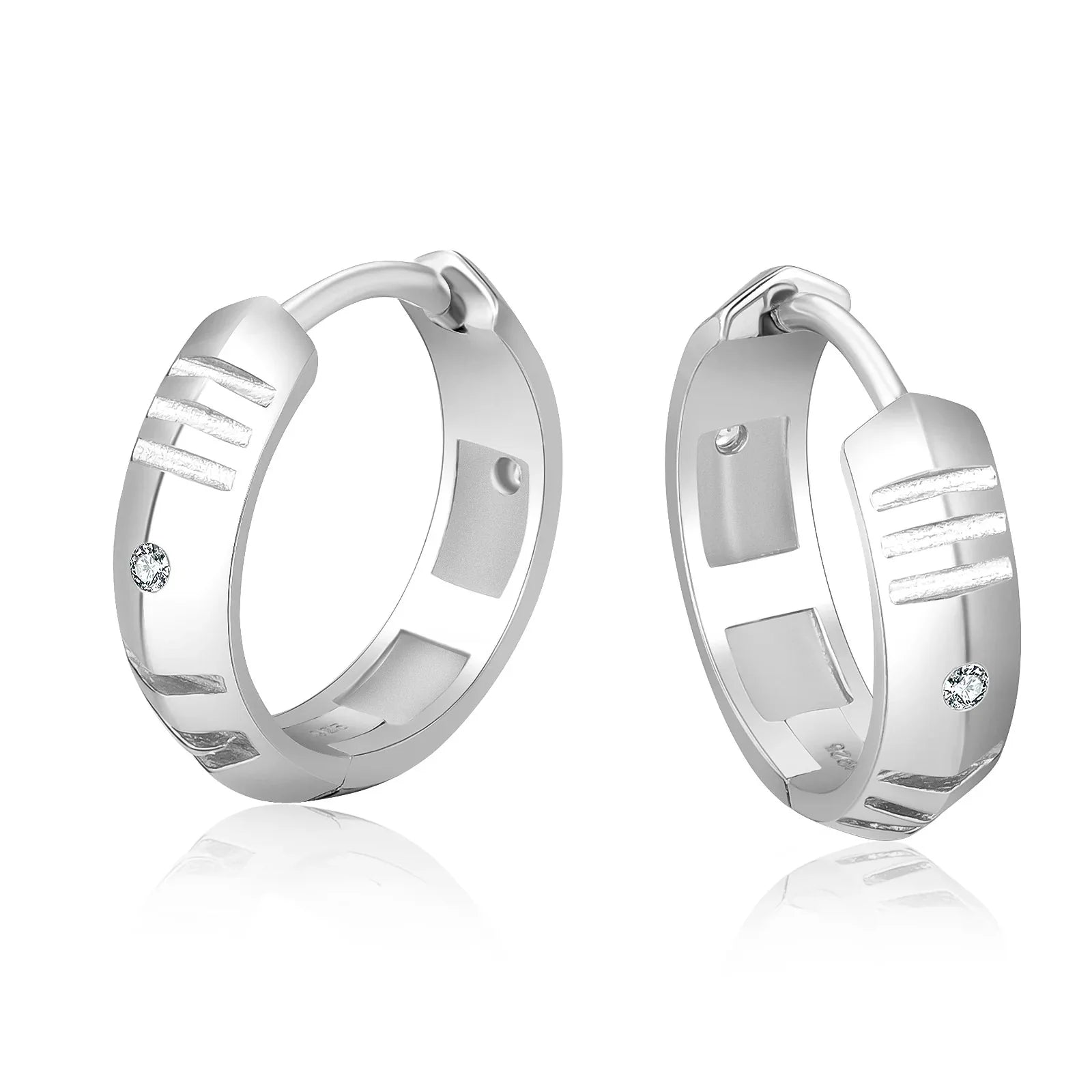 S925 Silver Roman Numerals Hoop Earrings for Men in Whitie Gold - 15mm by Bling Proud