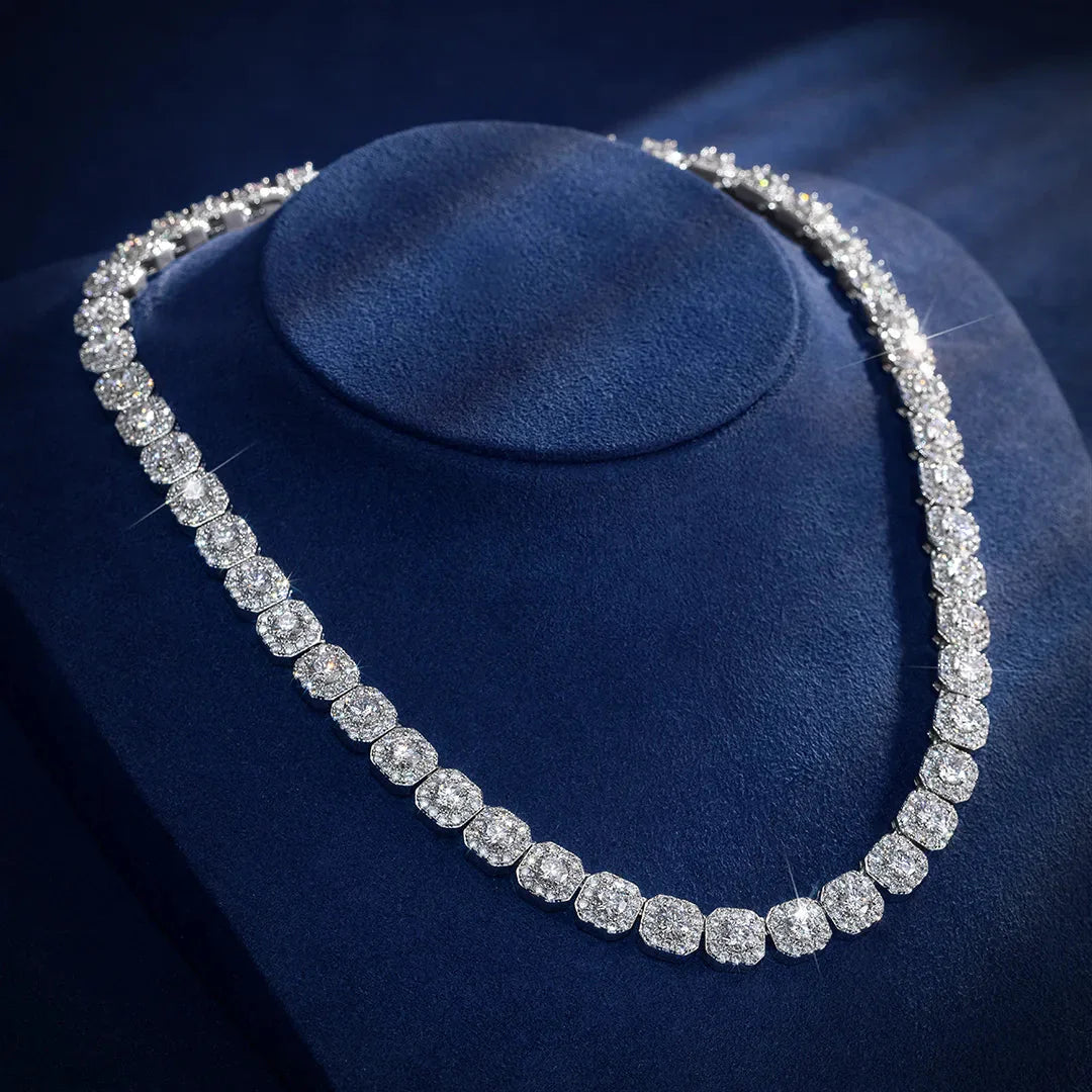 Glam up your look with this VVS1 Moissanite Diamond S925 Cluster Tennis Chain!