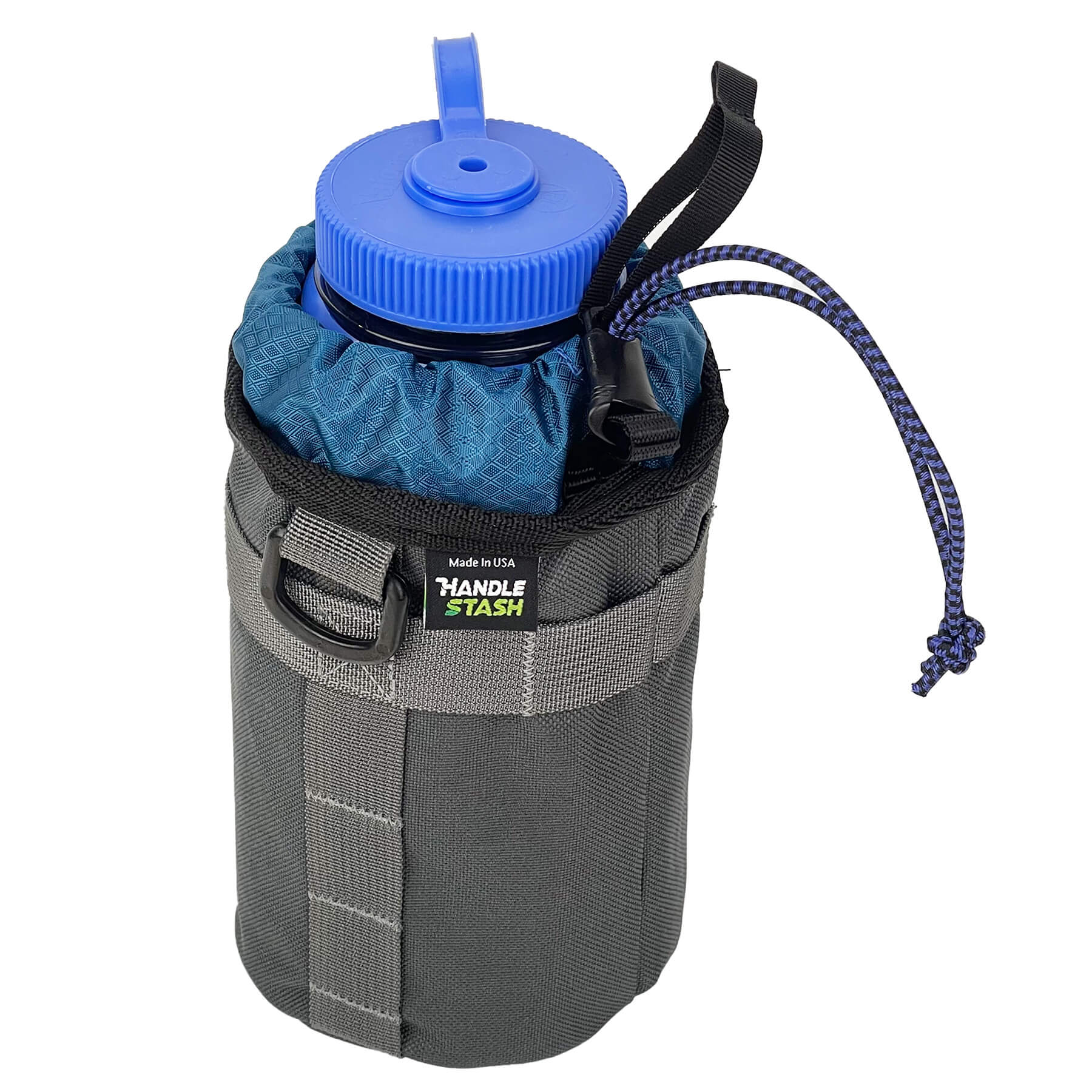 Sized to carry larger bottles like a Nalgene, HydroFlask, or Yeti, the HandleStash Stem Bag is insulated to hold ice for up to 7 hours. Stem Bags mount between your stem and handlebar using 3 supplied straps. One handed cinch lets you access snacks or your water bottle while on the go.