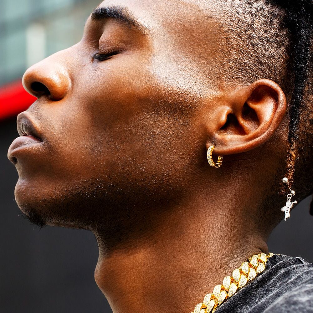 The Magic Circle® - 925 Sterling Silver Diamond Men's Hoop Earrings in 14K Gold by Bling Proud
