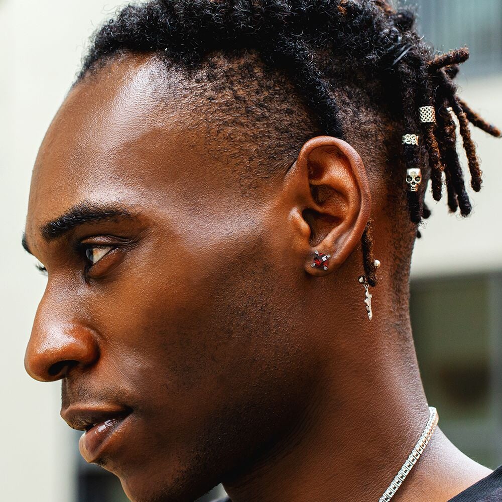 The Passion II® - 925 Sterling Silver Red Ruby Diamond Stud Earrings for Men by Bling Proud