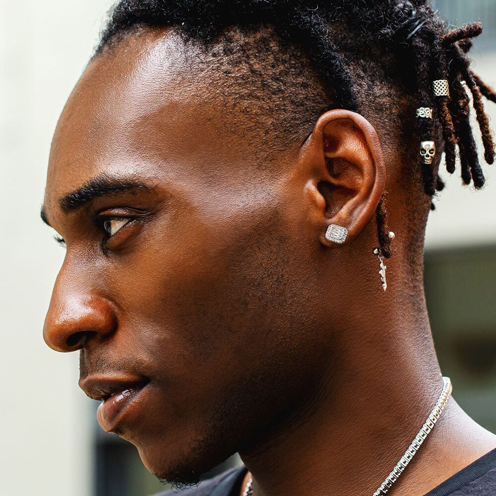 The Pride II® - 925 Sterling Silver Iced Diamond Square Stud Hip-Hop Earrings for Men by Bling Proud