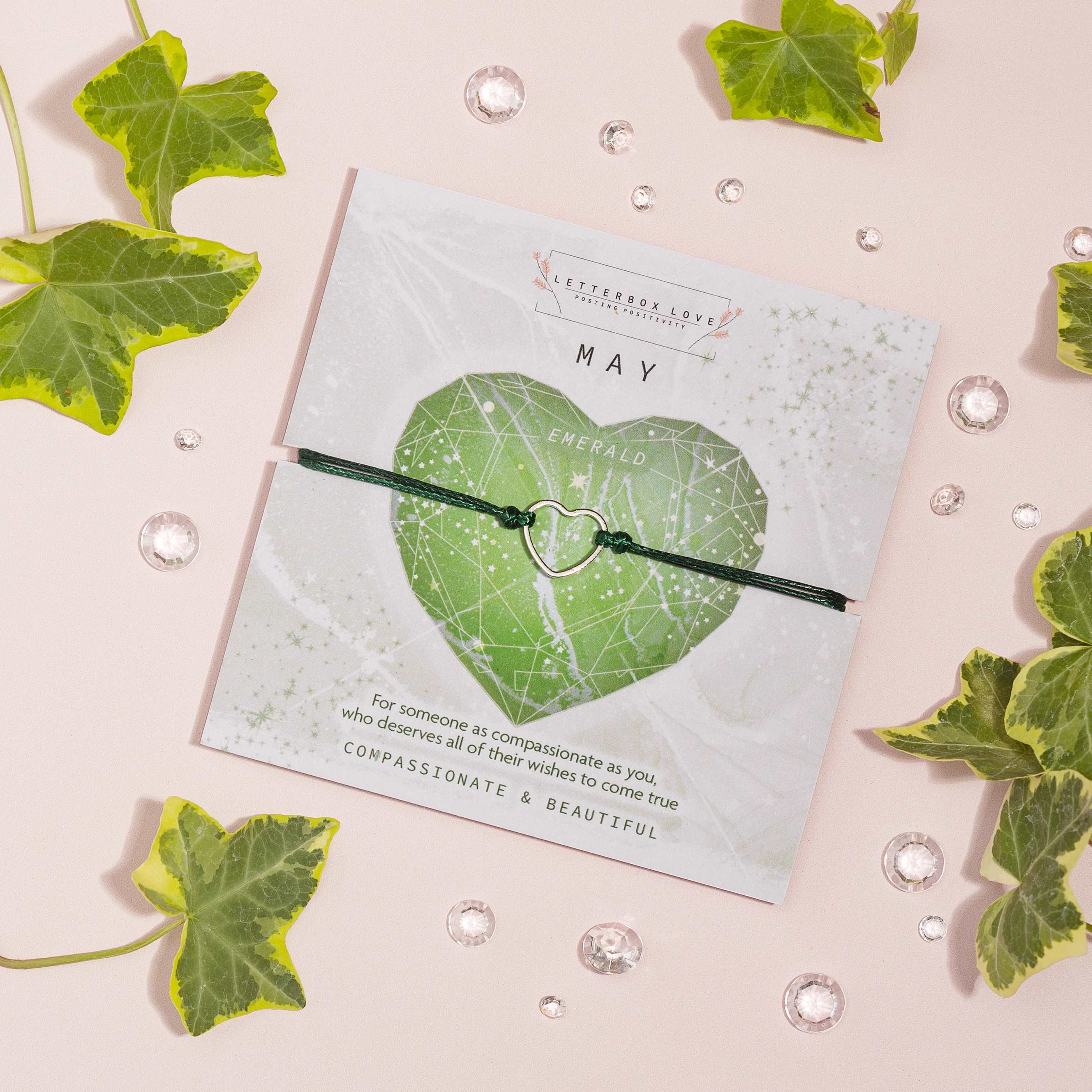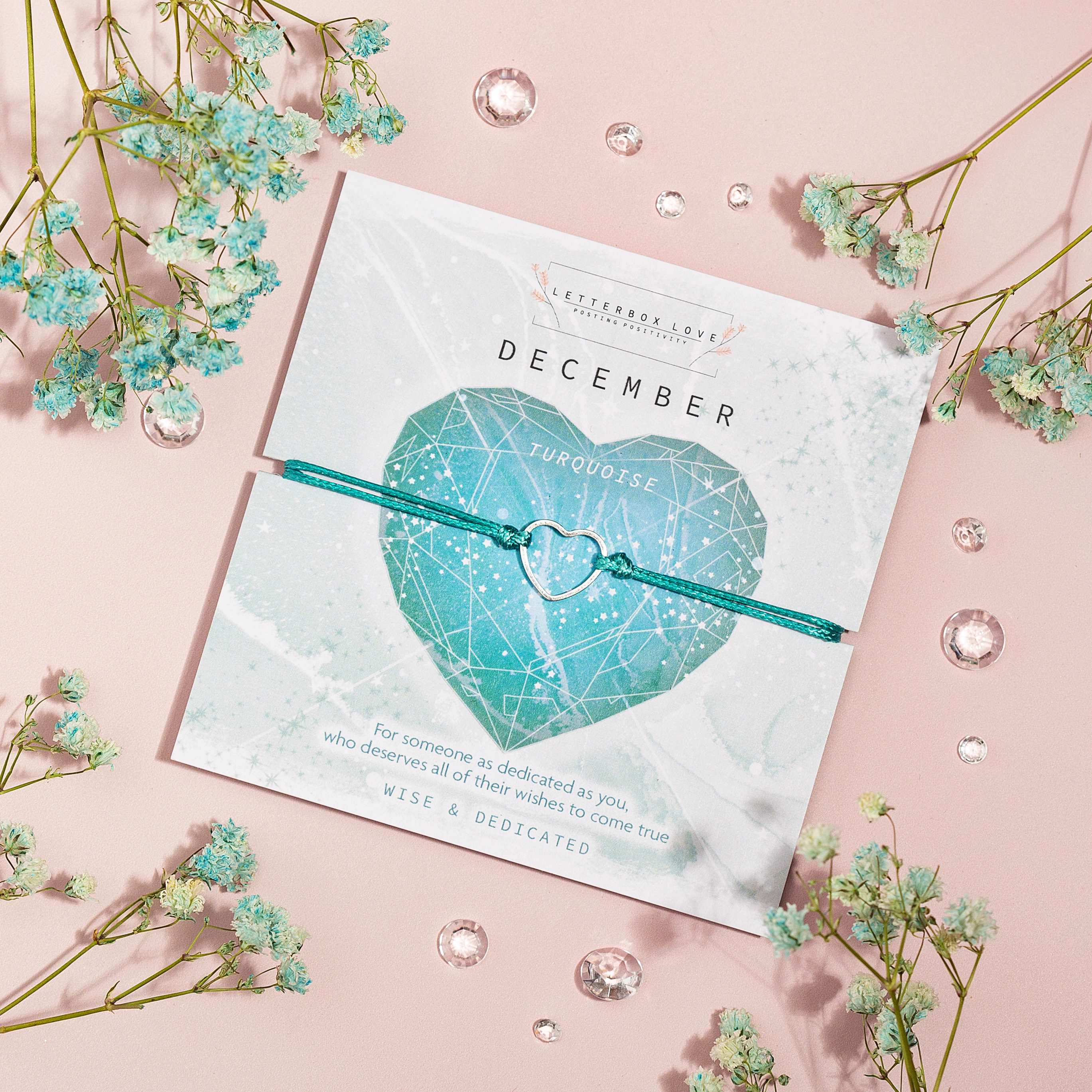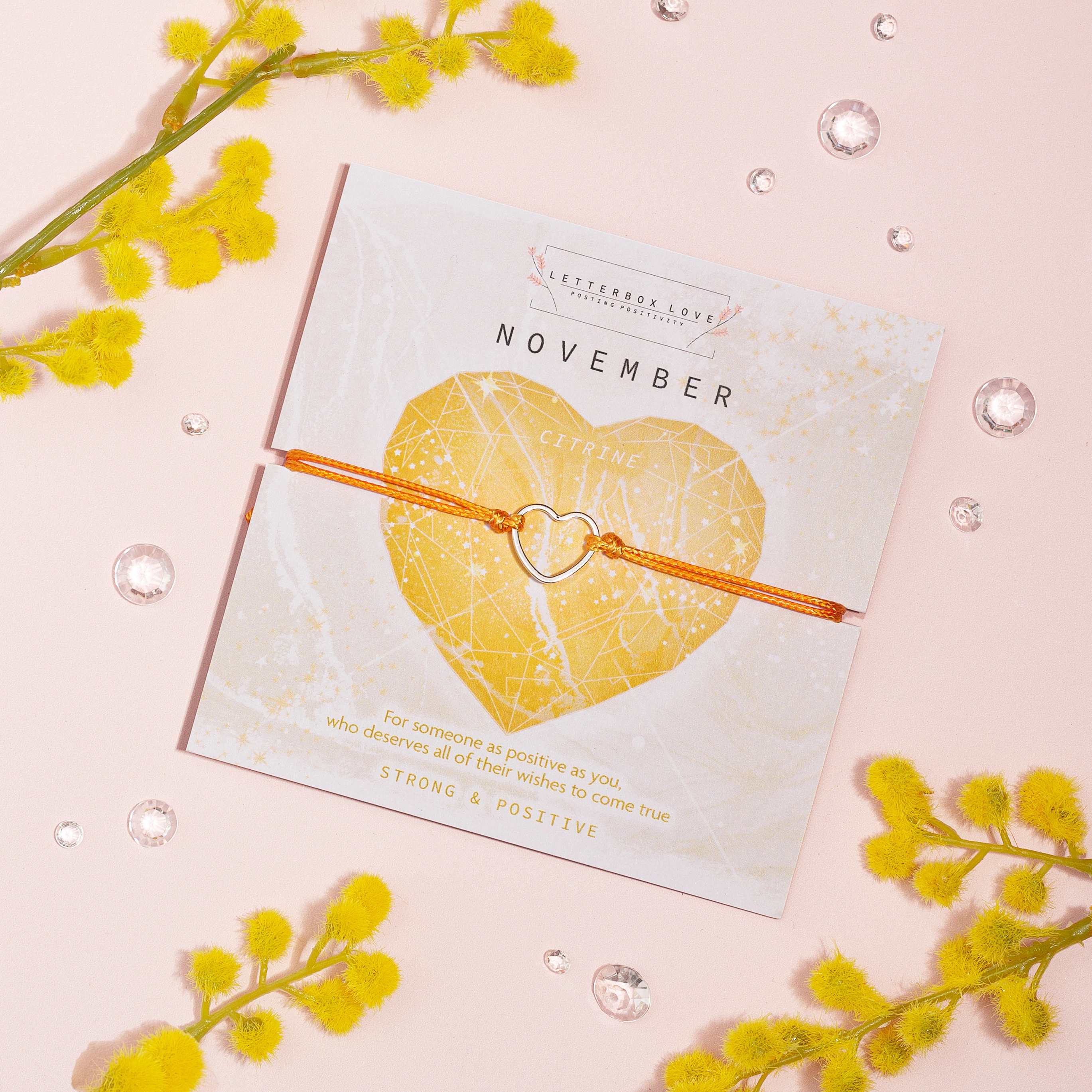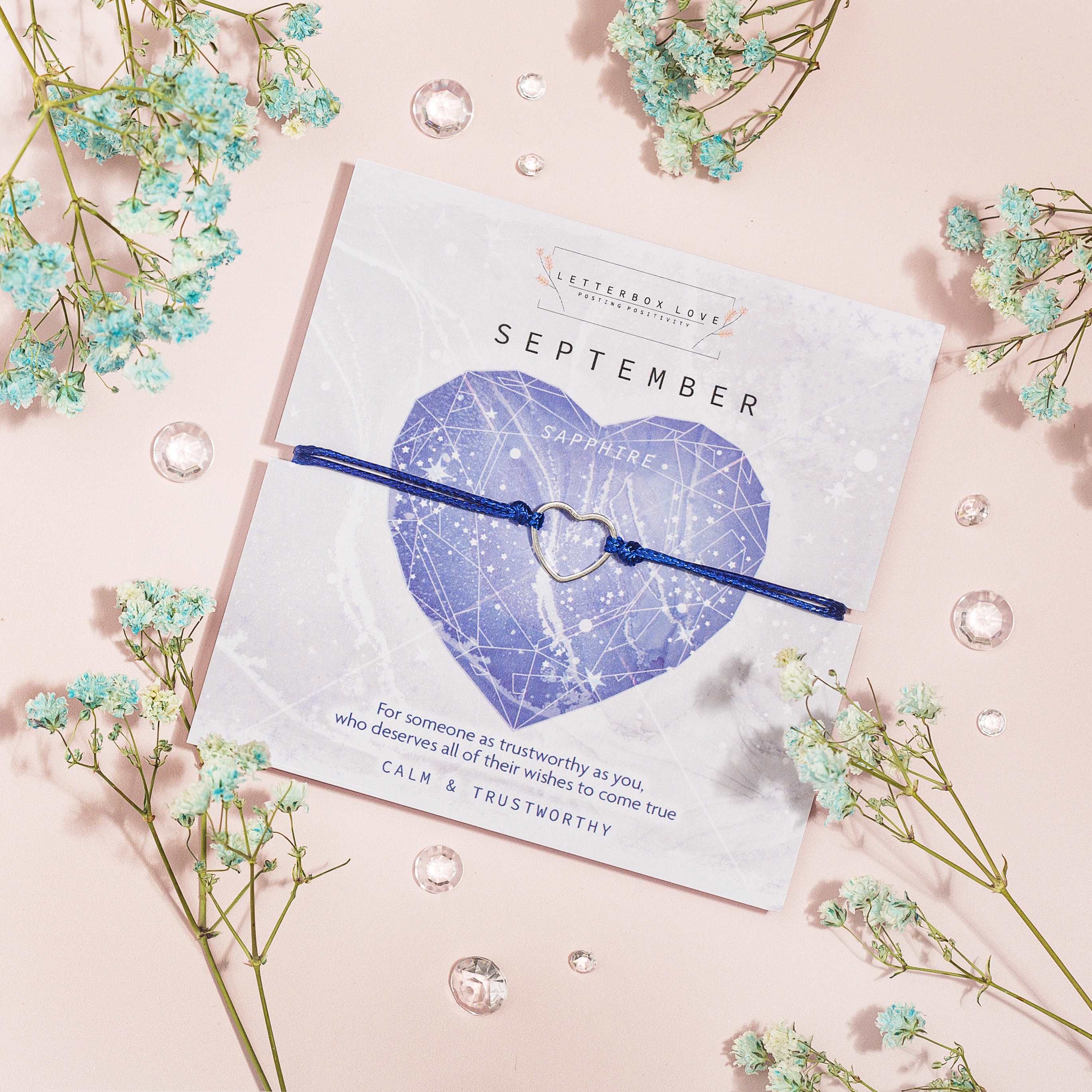 A vibrant collection of birthstone wish bracelets, each month showcasing a dazzling birth stone print and a dainty hollow heart adjustable string bracelet. For a cute and affordable gift that is perfect for stocking stuffers or any occasion.