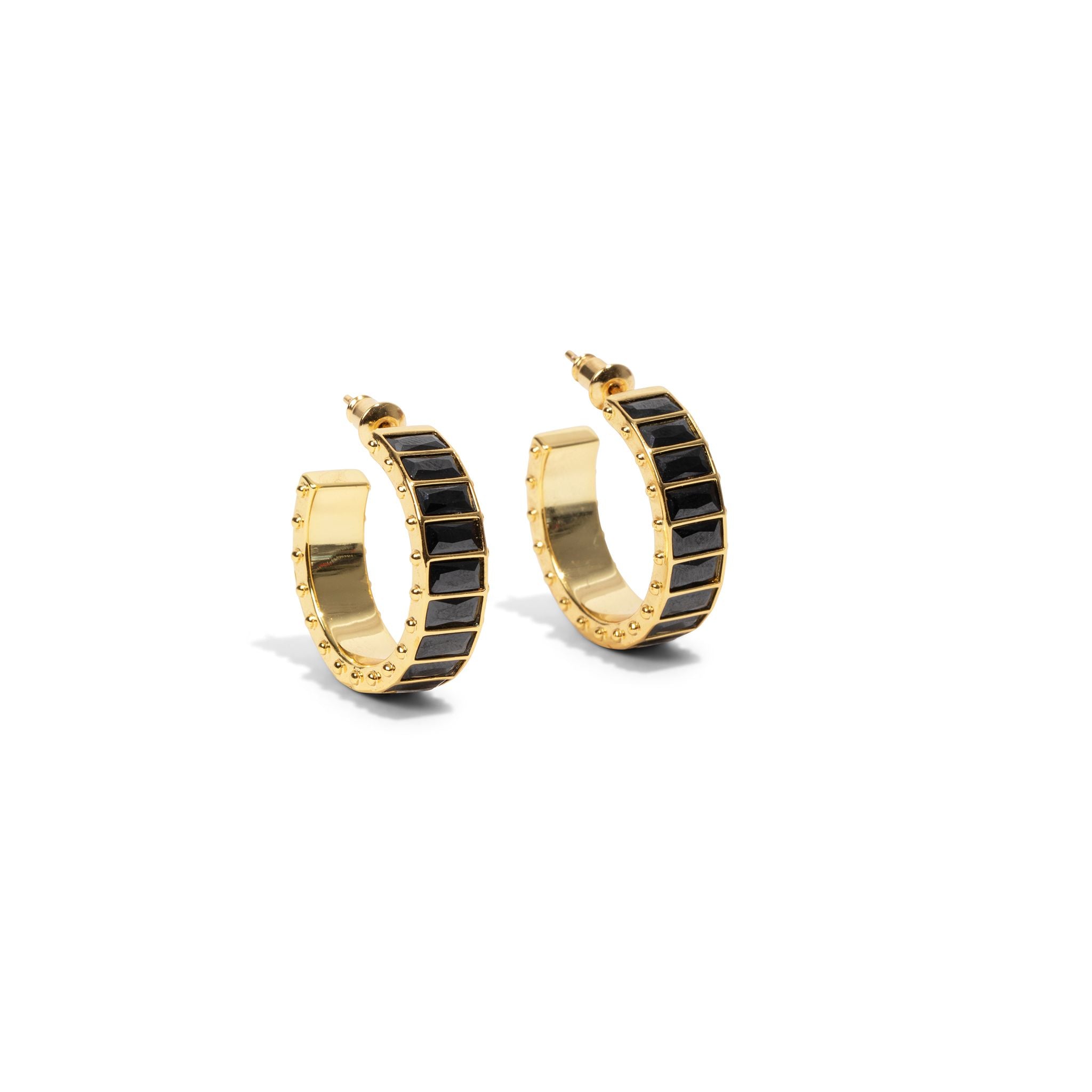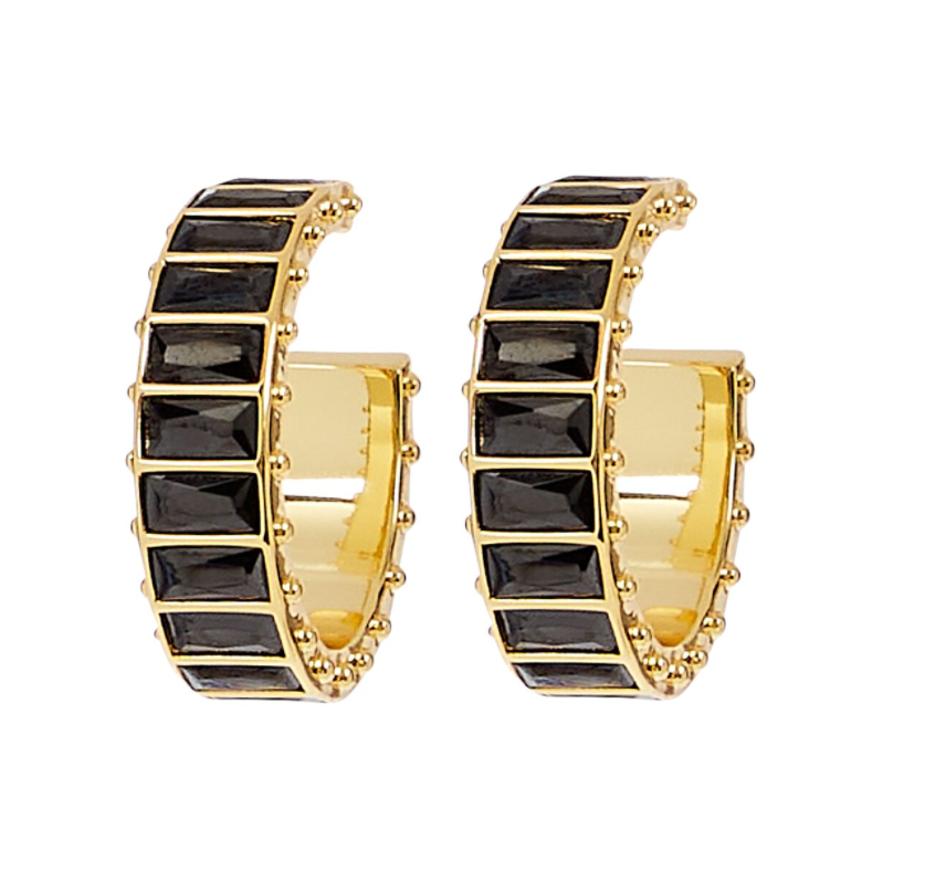 Metal + Materials: 14k gold plating over brass, Swarovski gems circle the entire hoop