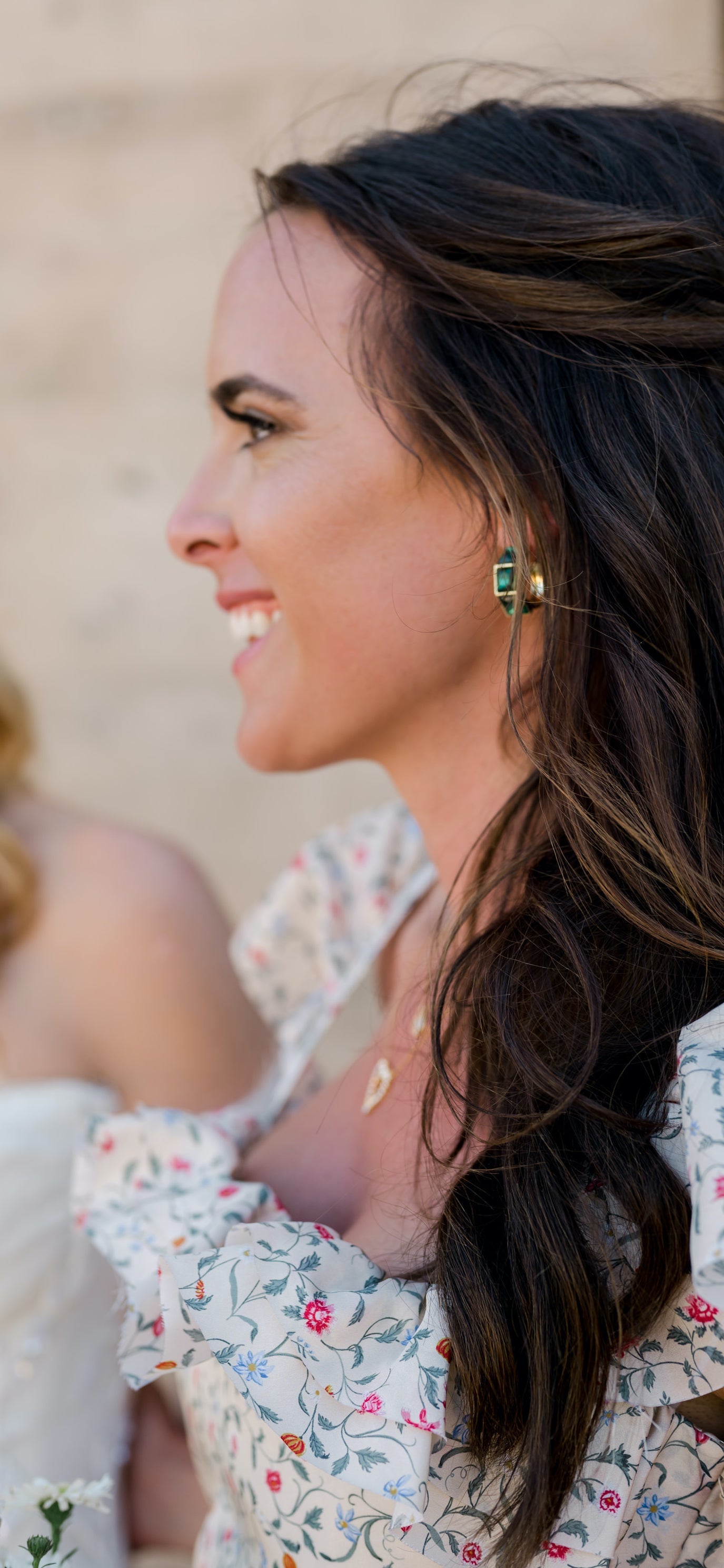 Fulfilled by our friends at Short & SuiteDesigned by our Founder for her bridal party to wear on her big day. This elegant 3-stone stunning earring will elevate any look as your best friends elegantly walk down the aisle. Sold per pair. Description: 14K Gold over brass with emerald glass...