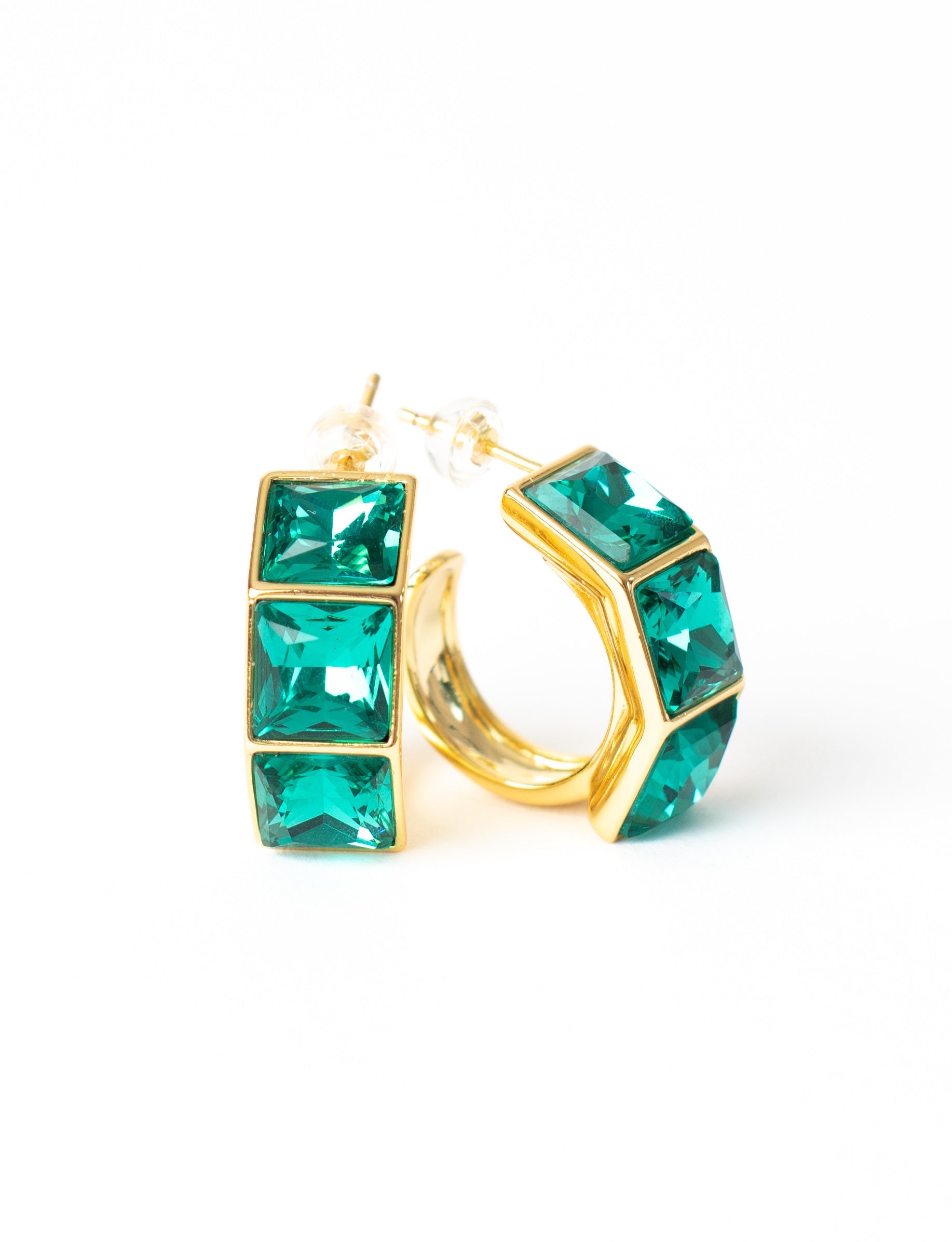 Emerald 3-Stone Hoop Earrings by Short & Suite