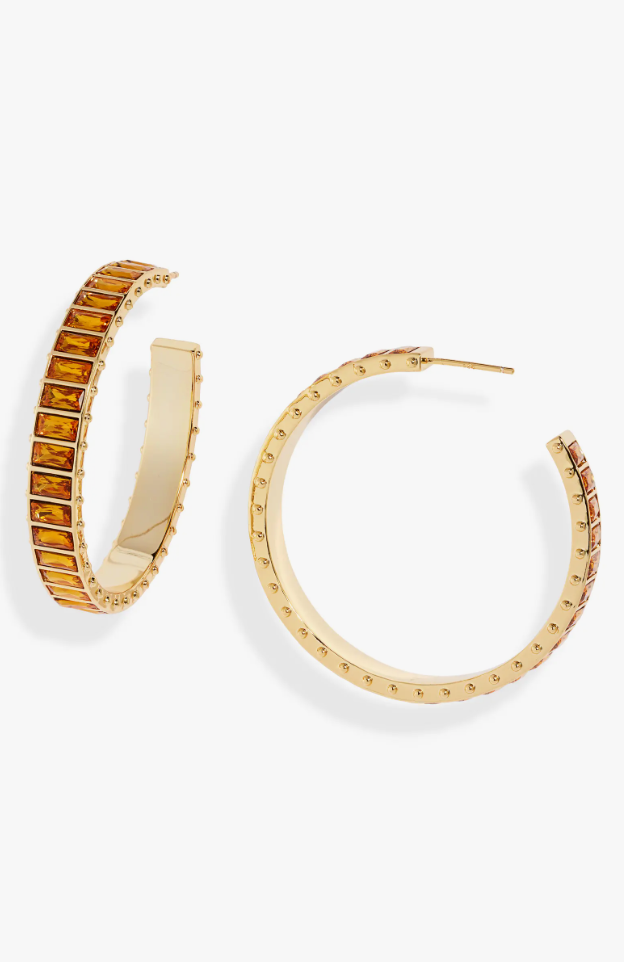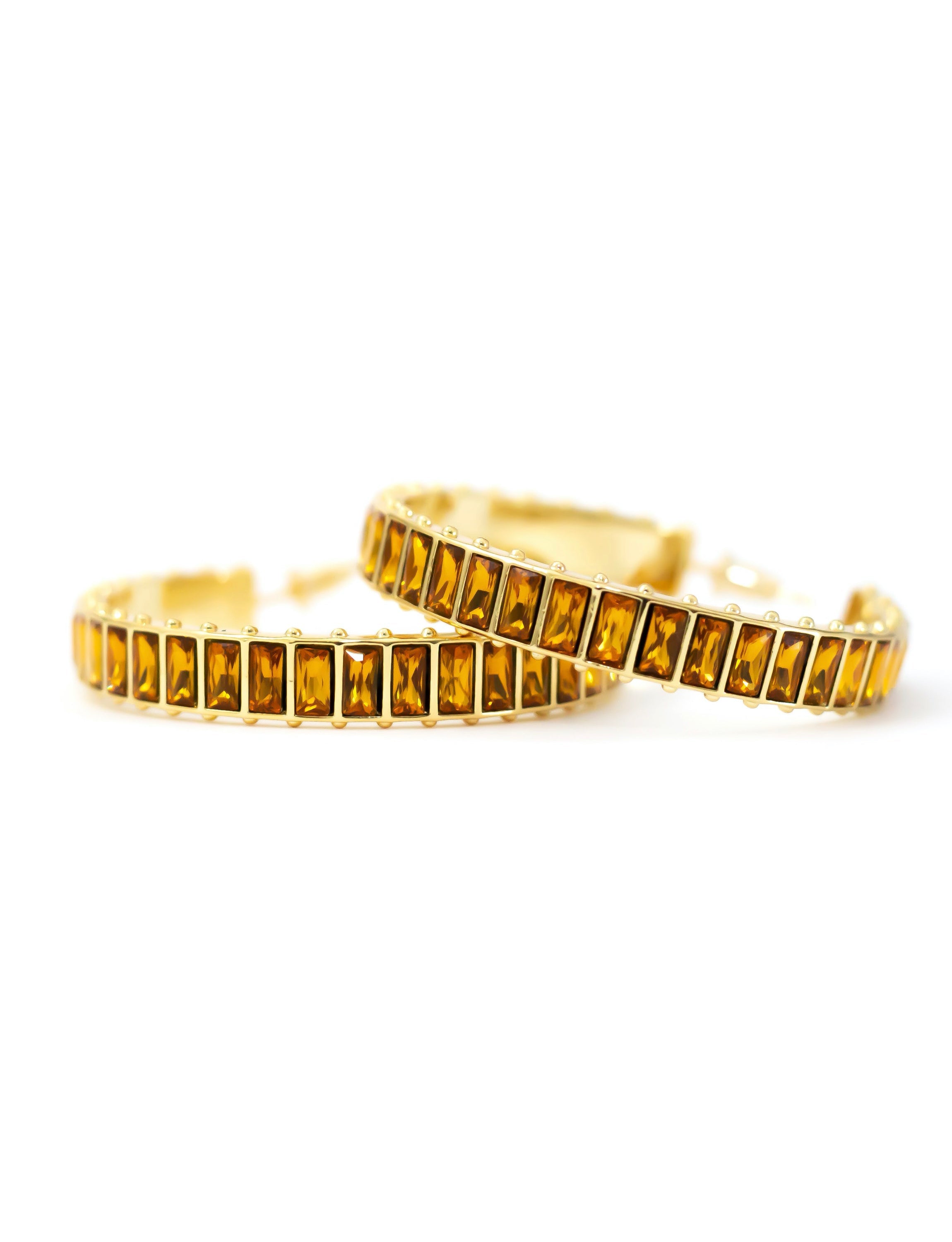 Turn heads this holiday with our Large Eternity Gem Hoop in our Honey Stone Color way. Perfect for party season, these epic earrings are made for celebrating.