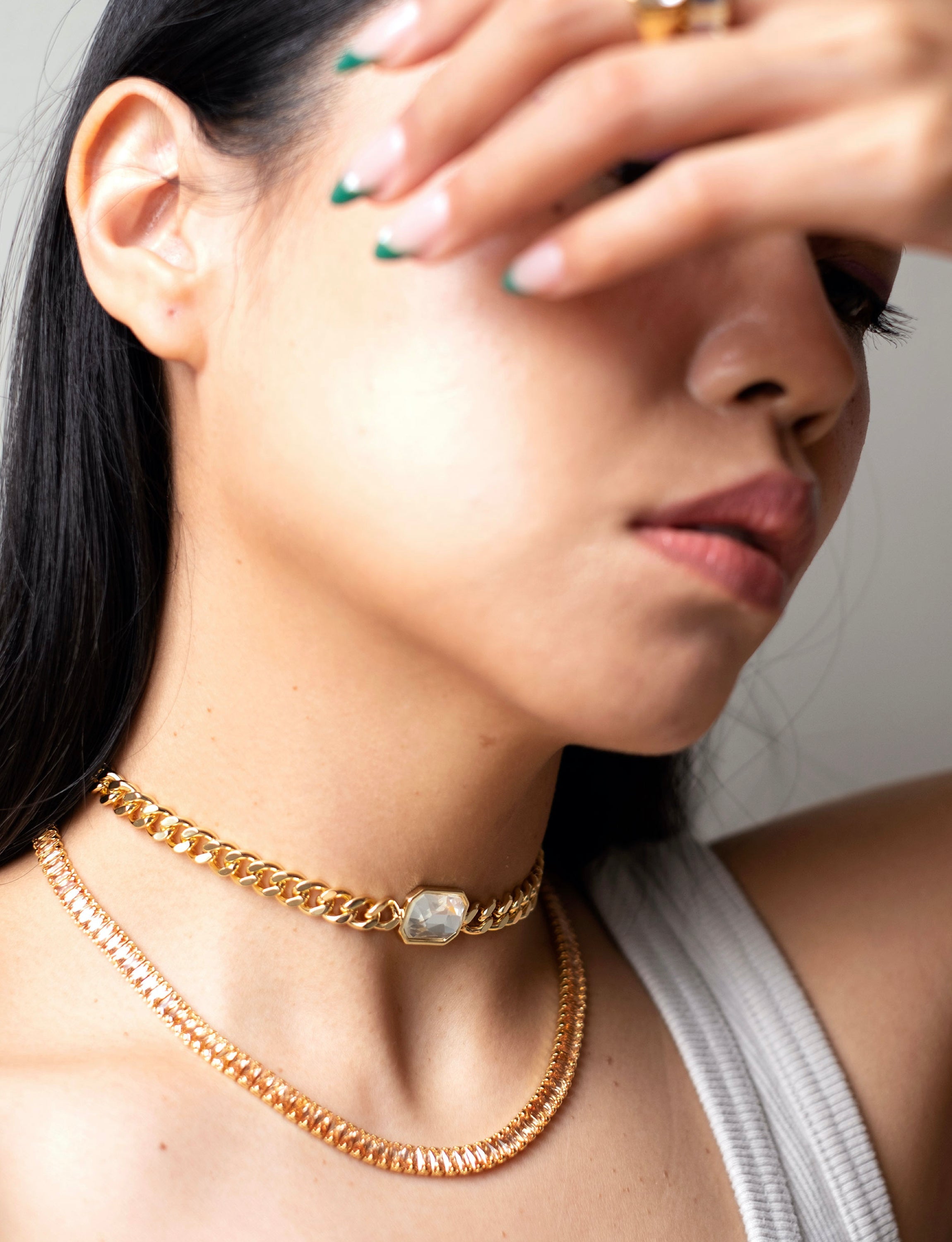 Deck your décolletage out this season with our show-stopping Eternity Gem Tennis Necklace in Honey. Layer with an S&S choker for a well-styled stack or let it shine solo.
