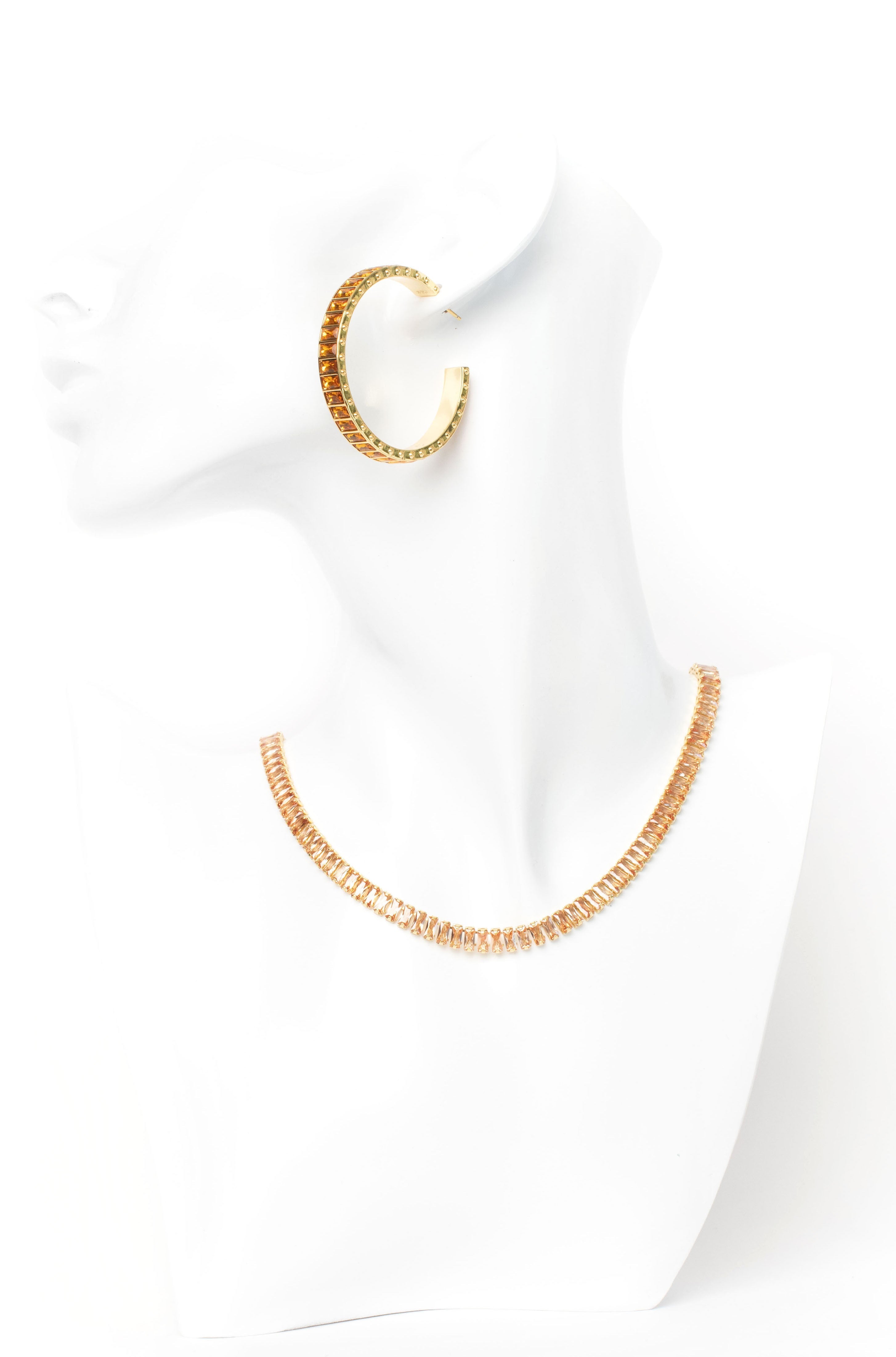 Fulfilled by our friends at Short & SuiteDeck your décolletage out this season with our show-stopping Eternity Gem Tennis Necklace in Honey. Layer with an S&S choker for a well-styled stack or let it shine solo. Swarovski honey Color gems surround your neck 14k Gold plating over Brass. Both versions are adjustable for a choker...