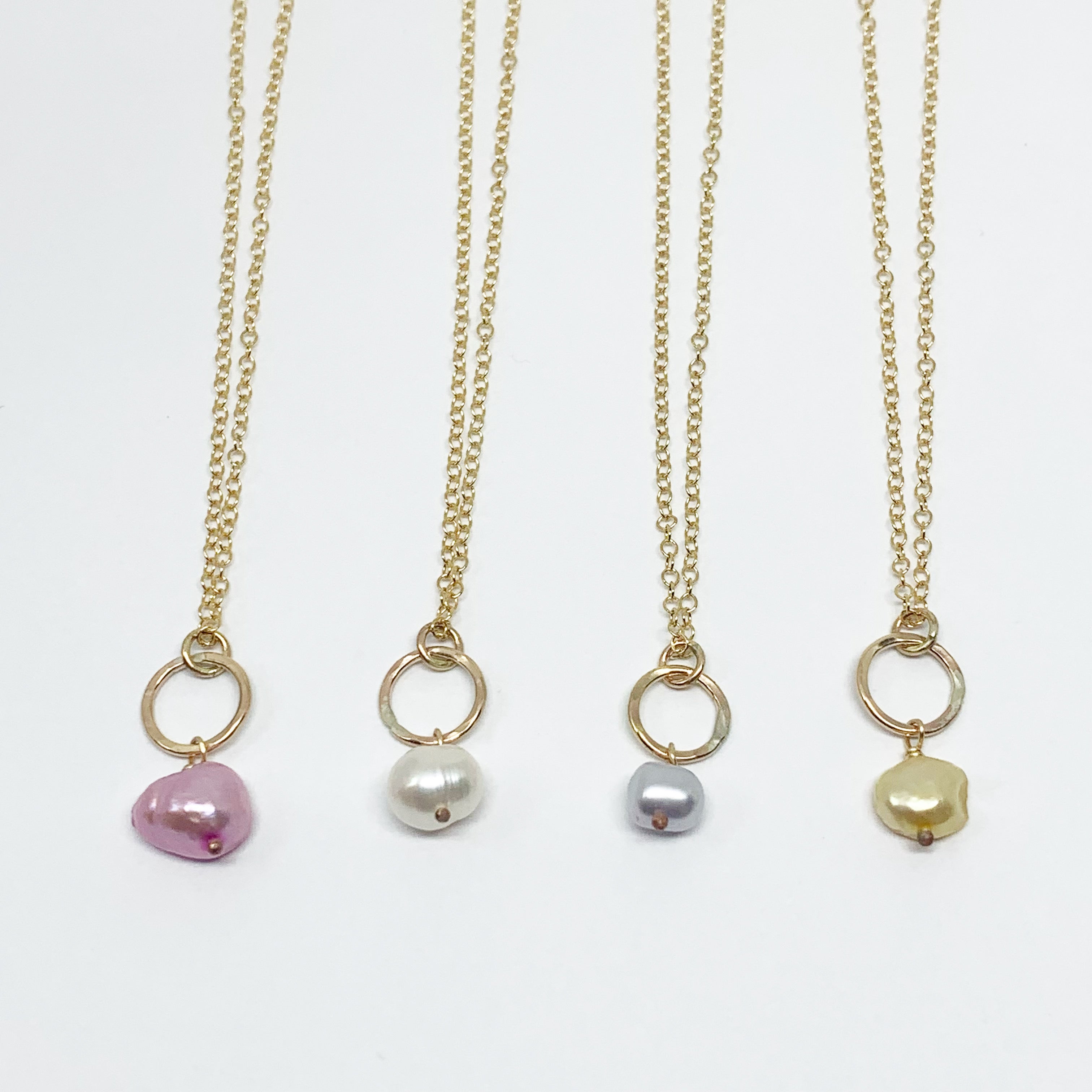 Pearl Drop Charm Necklace is a perfect easy to wear accessory! They are made with gorgeous, 6-8mm freshwater pearls, in your choice of pearl color and metal color. The drops measure approx 1 inch in length, and chain is an adjustable 16-18" lightweight cable chain. This necklace is a part of the Forest & Sea Collection: Heirloom quality, whimsical jewelry inspired by nature’s indefinable beauty and the timeless, organic raw aesthetics of the world around us.
