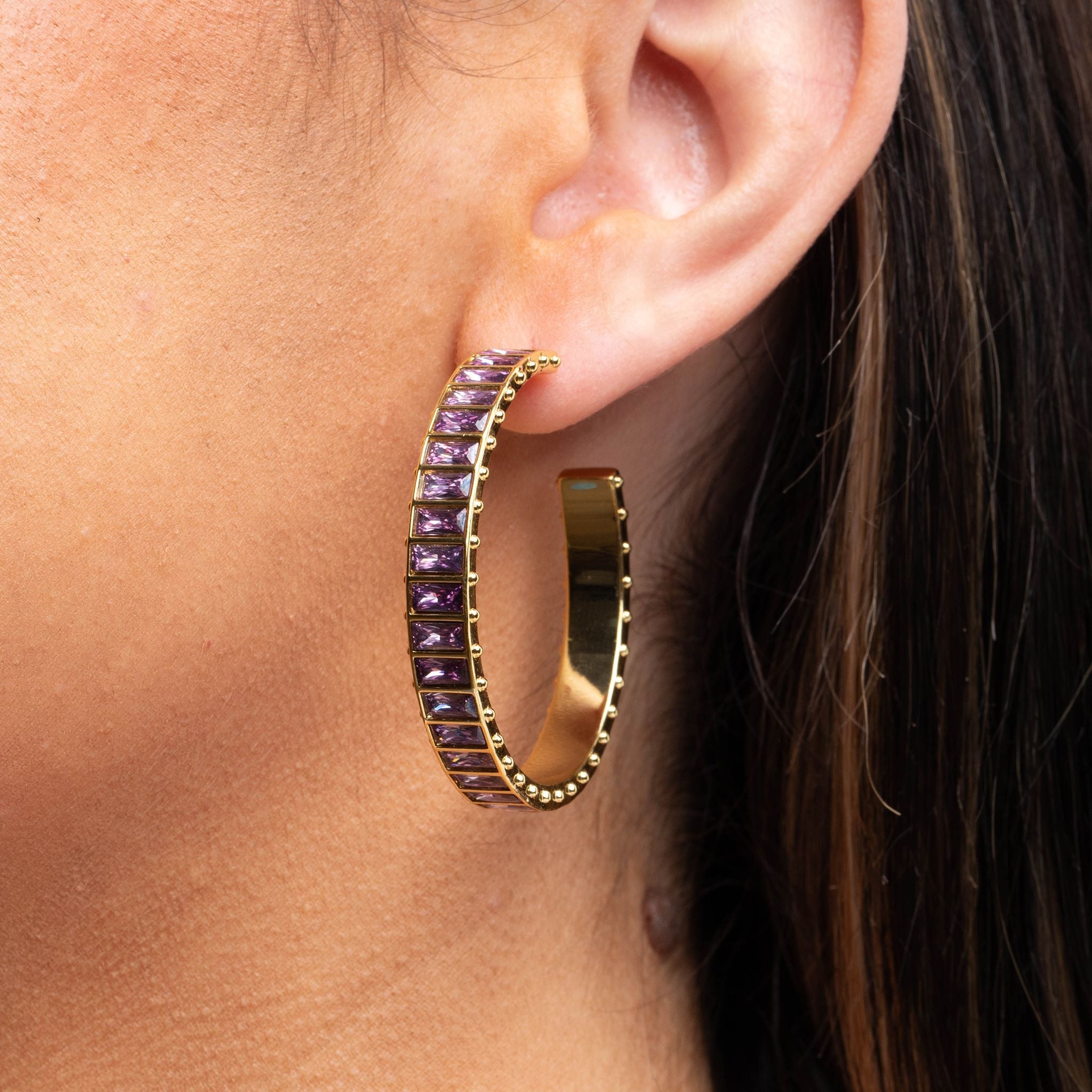 Turn heads this holiday with our Large Eternity Gem Hoop in our Purple Stone Color way. Perfect for party season, these epic earrings are made for celebrating.