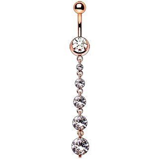 • Rose Gold plated Navel Ring / Belly Button Ring• Five different size round Clear CZ cascade down from the navel ring