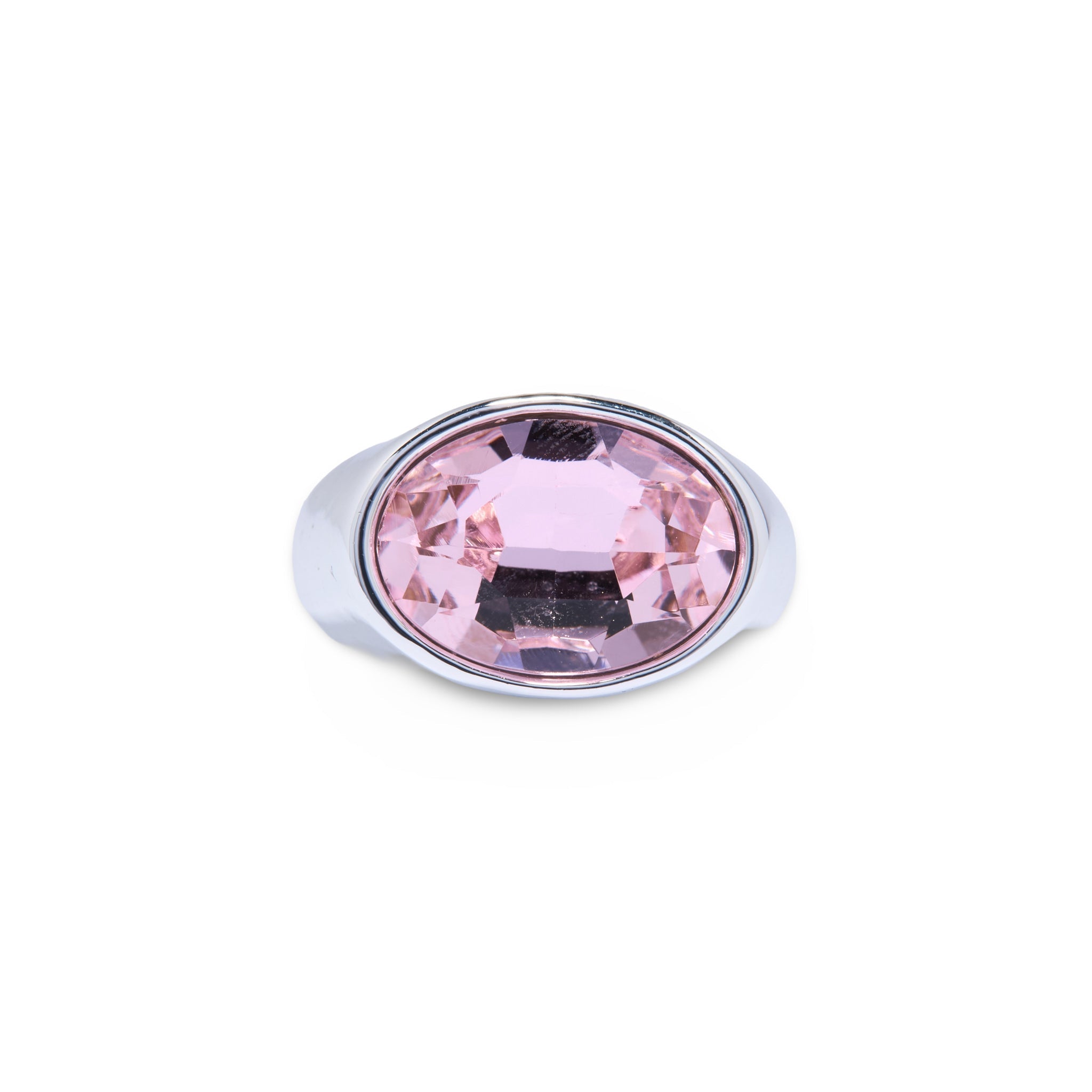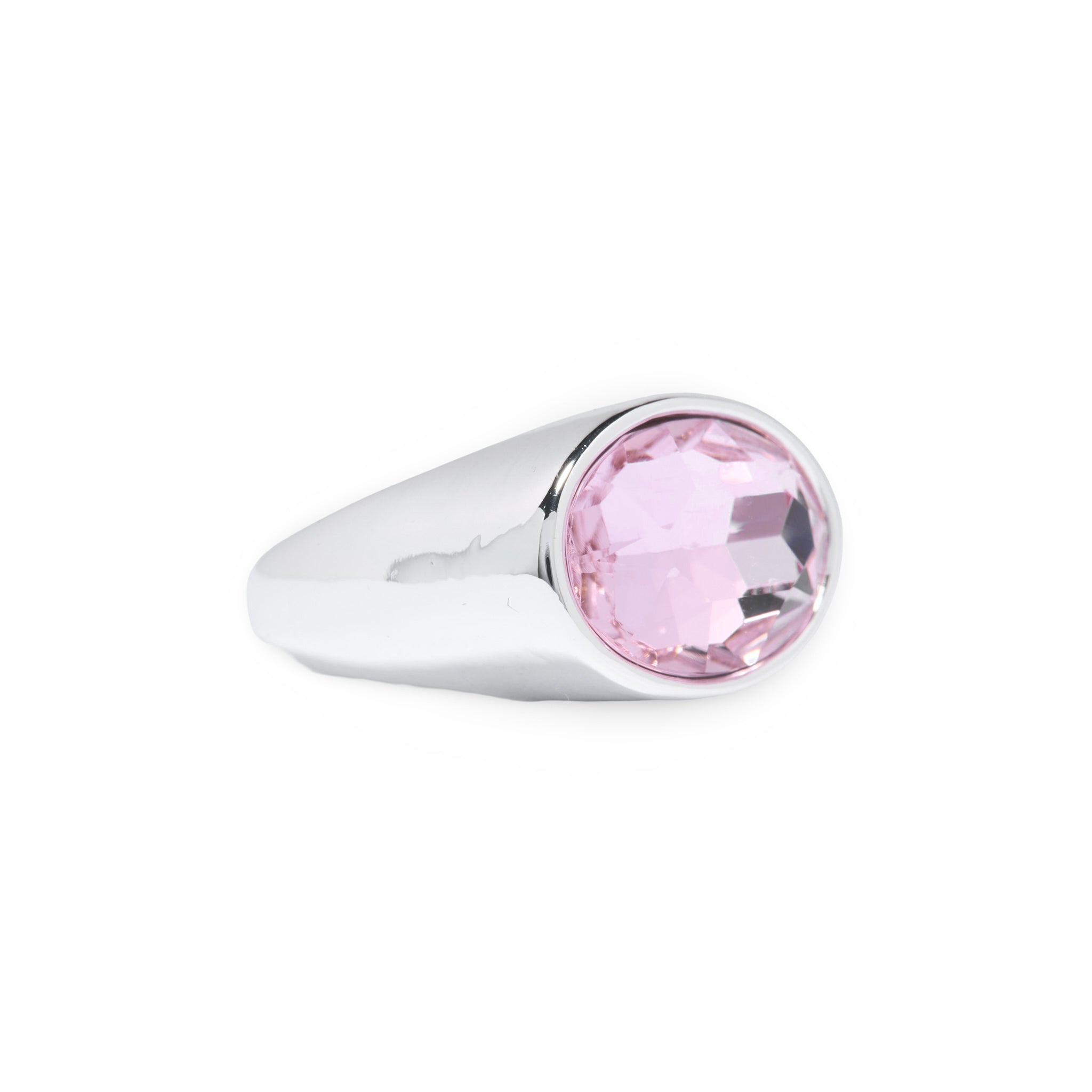 Silver Pink Bezel Oval Gold Stone Ring by Short & Suite