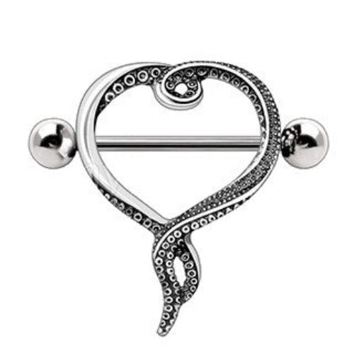 Fulfilled by our friends at Fashion Hut Jewelry• Nipple Shield / Nipple Ring with a heart design• Tentacles wrapped around in a heart shape• Barbell Thickness : 14GA | 1.6mm• Barbell Length : 7/8' | 22mm• Heart Inner Diameter (Wearable Size) : 9/16" | 14mm• Ball Size : 5mm• Thread...