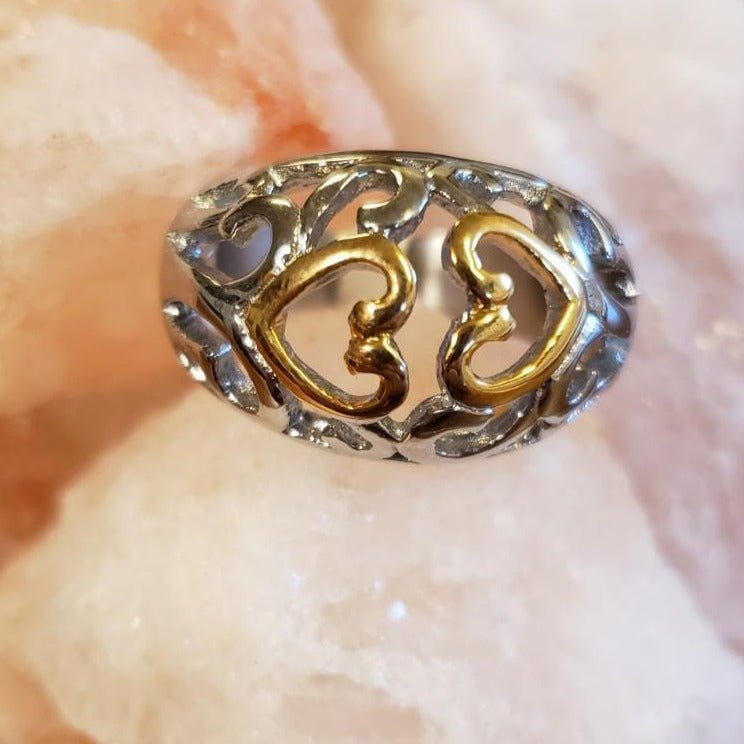 Two Tone Heart Filigree Ring by Fashion Hut Jewelry