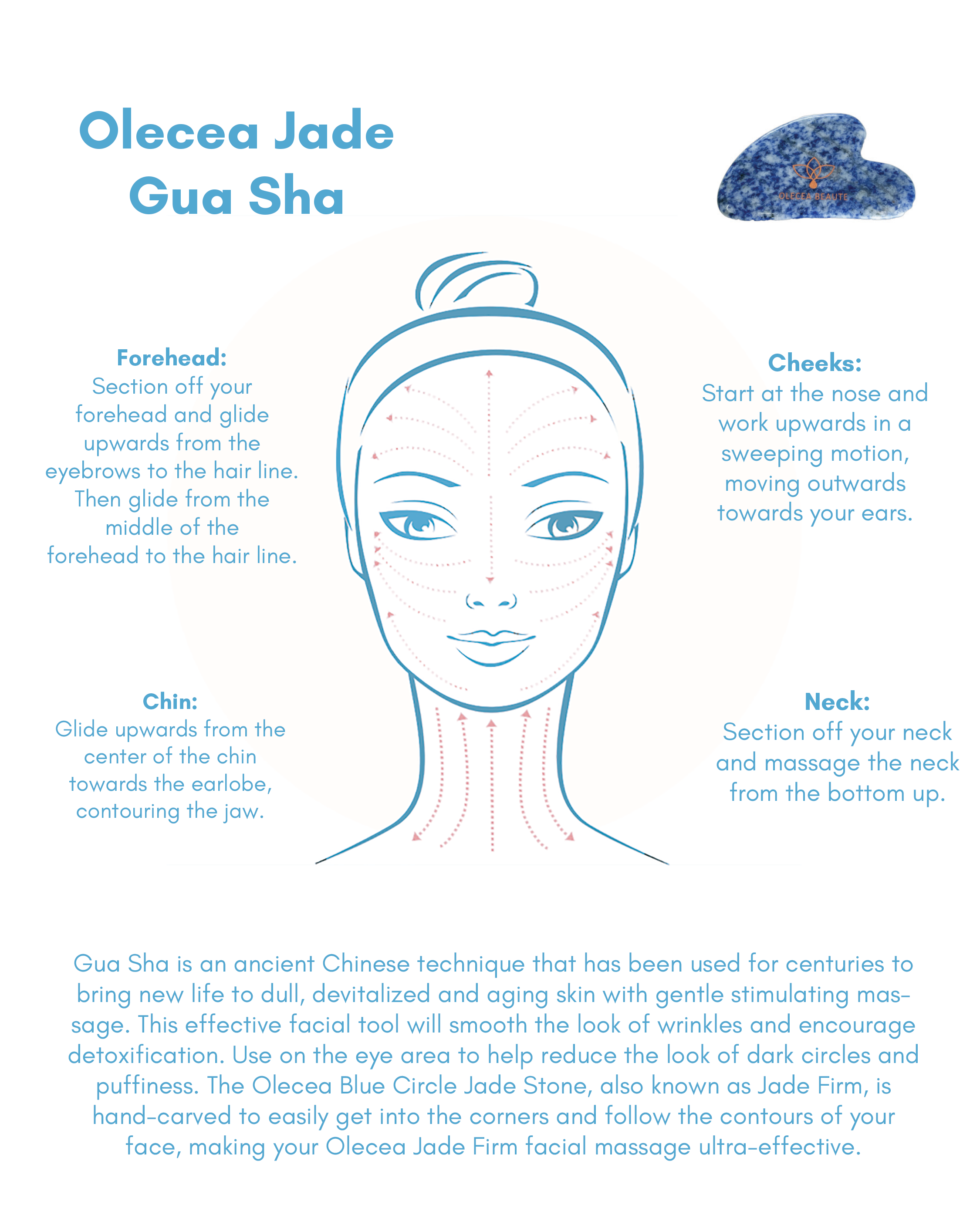 The Blue Circle Jade Gua sha Stone is a skincare tool inspired by a traditional Asian practice meant to keep skin looking young. Made of a special kind of jade, it releases far infrared rays, which are great for rejuvenating skin cells and preventing signs of aging.