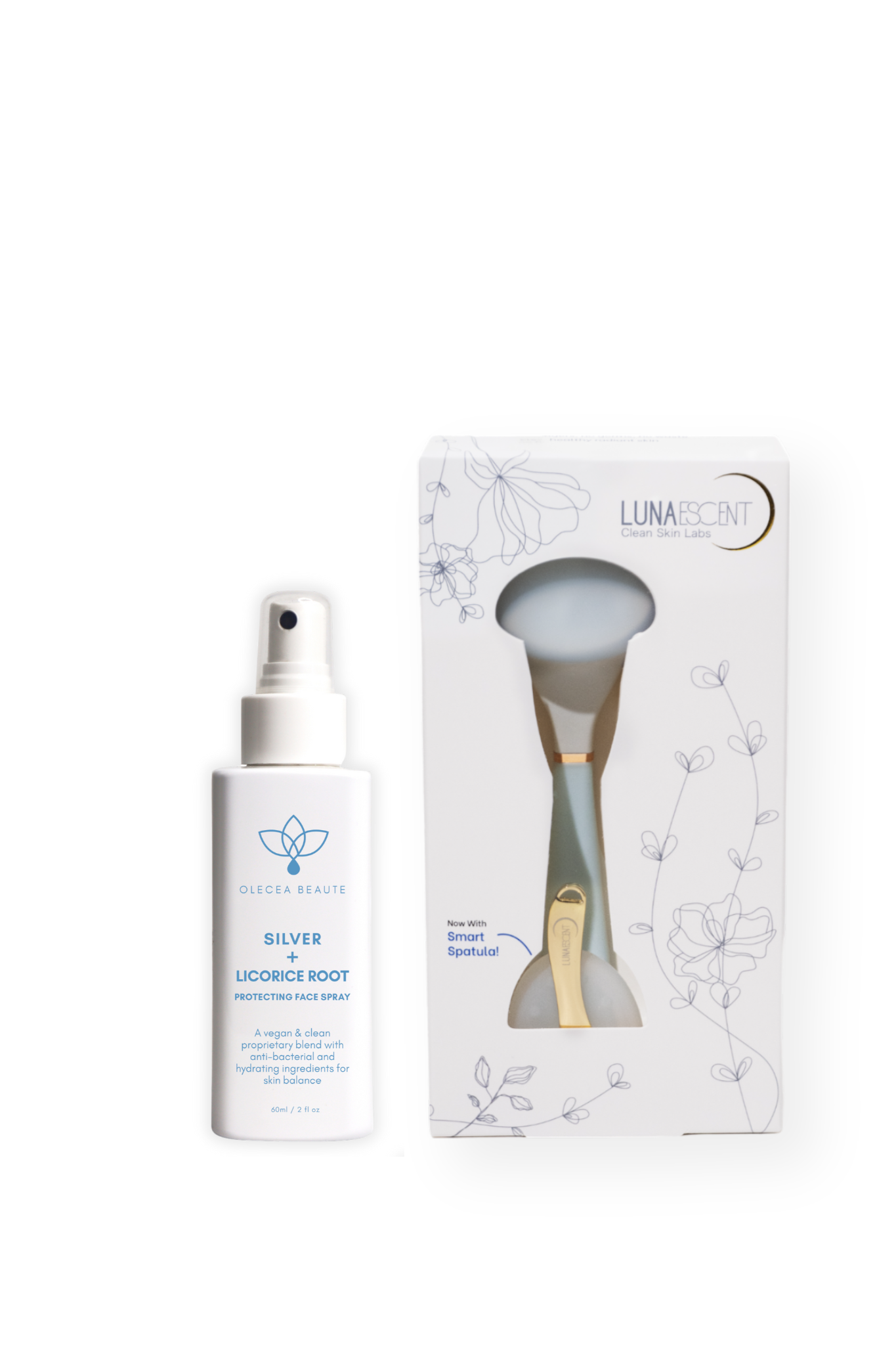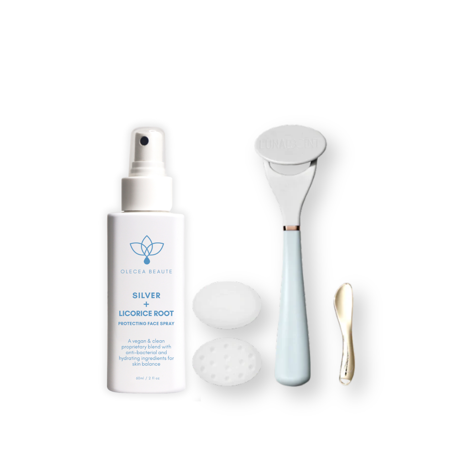 Struggling with blemishes and breakouts? The Breakout Self-Care Set is designed to calm and clarify your skin for a healthier, more balanced complexion. This powerful combination of Olecea's Silver + Licorice Root Protecting Face Spray and the innovative LUNAESCENT Touch-Free applicator provides a gentle yet effective solution for breakout-prone skin.