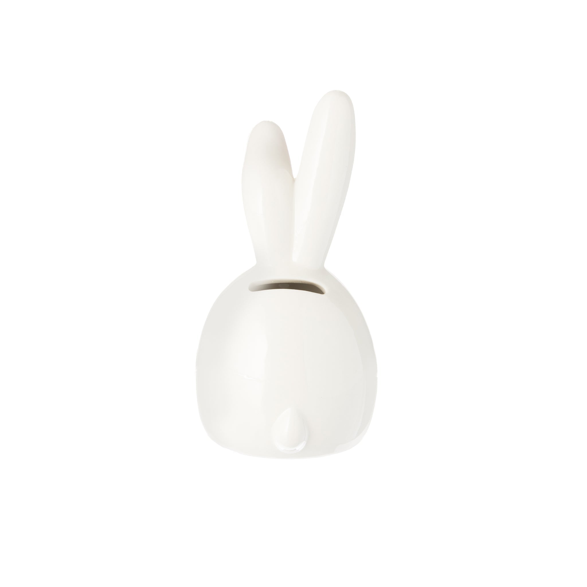 Our Ceramic Bunny Bank, measuring 6.25" by 3.25", is a delightful addition to your space. Crafted from smooth and environmentally friendly ceramic material, this piggy bank is both sturdy and durable.