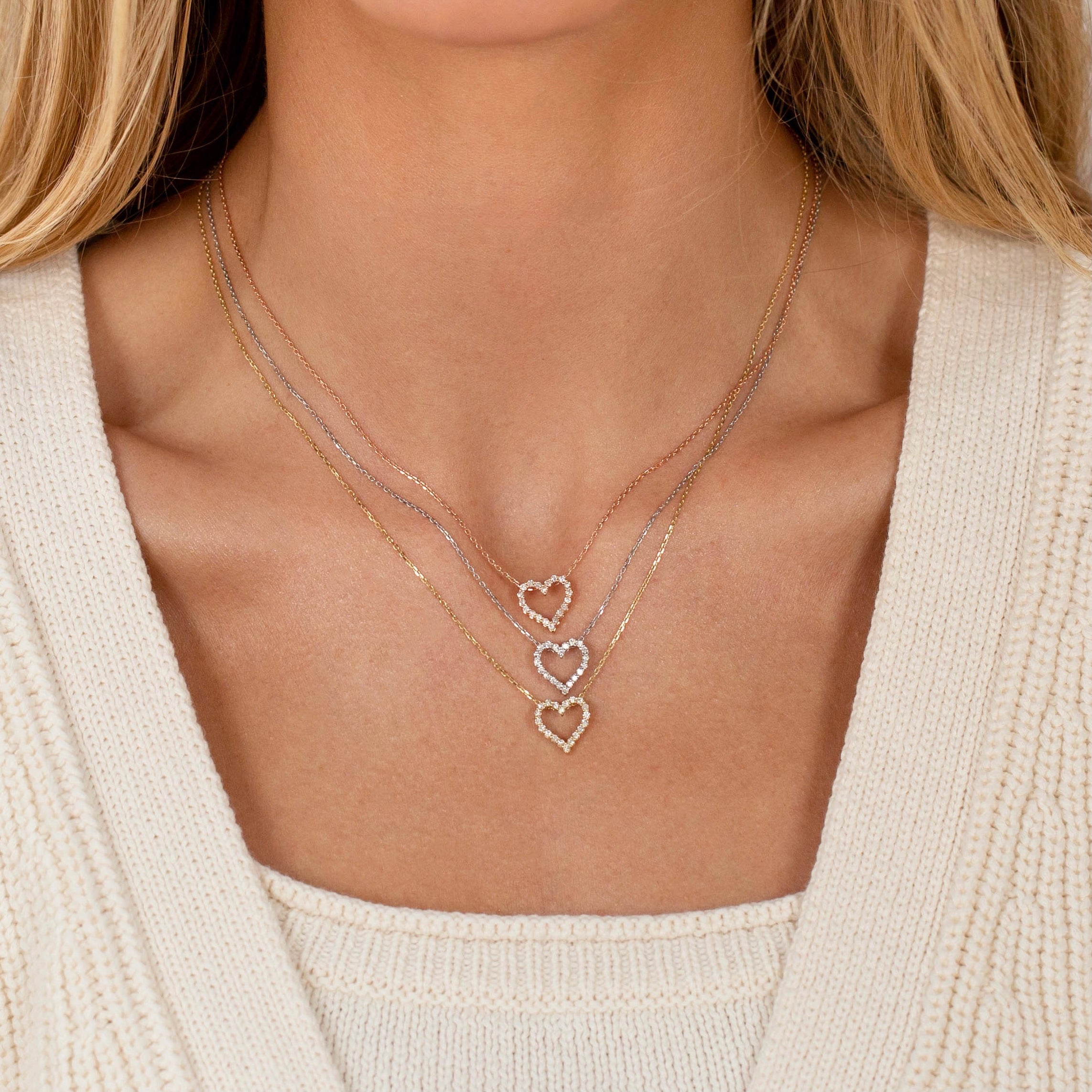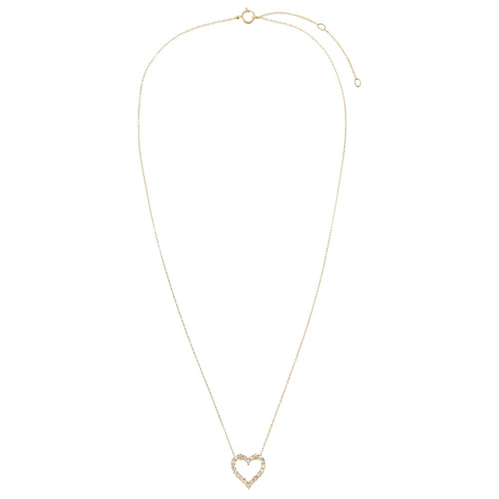 Flaunt your heart's desire for sparkling style in Adina Eden's Classic Natural Diamond Heart Necklace, featuring a diamond-adorned open heart pendant that hangs gracefully from a delicate chain. Available in three different 14K gold sheens, this gem is a sweet way to layer up any look. Pair it with your everyday 14K or another dazzling diamond necklace. It's a timeless beauty that deserves to be shown off at all times.
