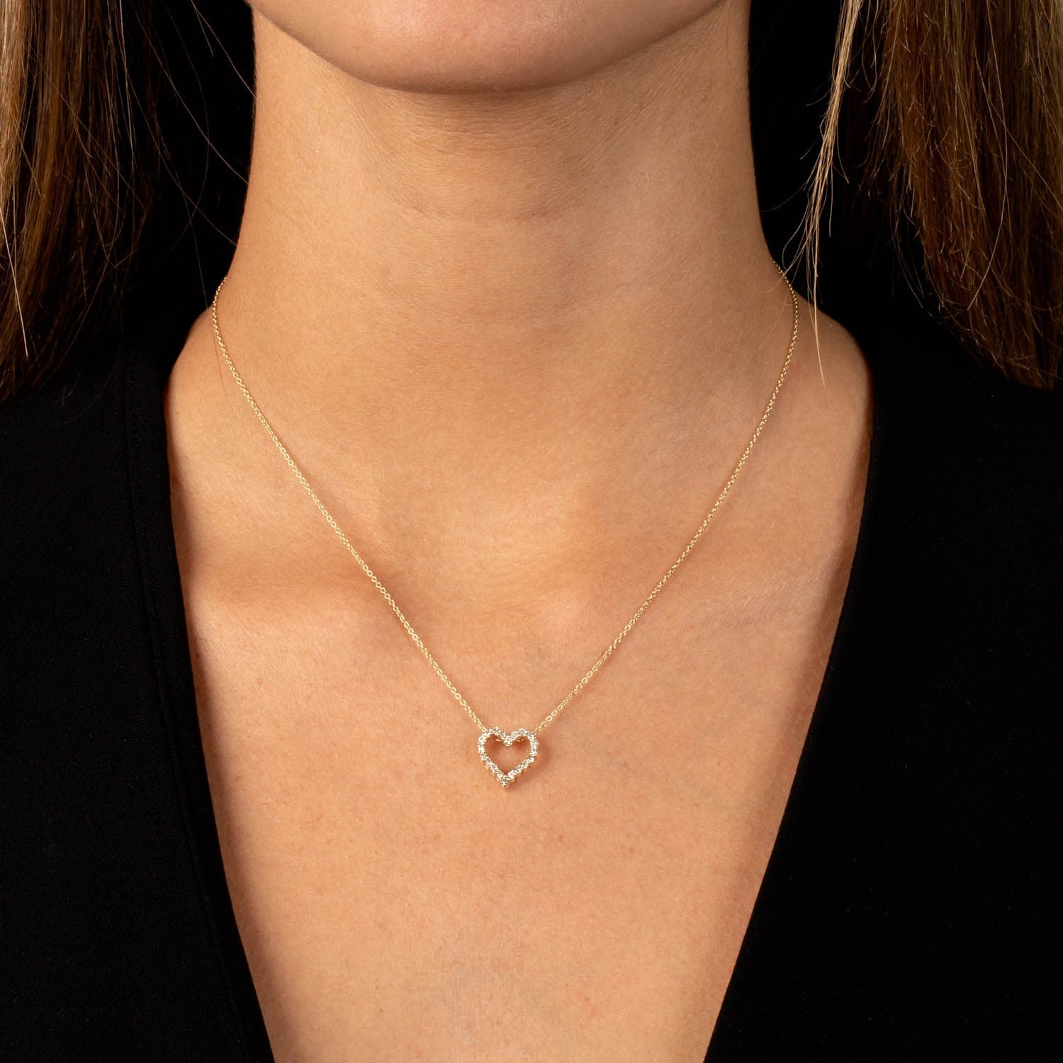 Fulfilled by our friends at By Adina EdenFlaunt your heart's desire for sparkling style in Adina Eden's Classic Natural Diamond Heart Necklace, featuring a diamond-adorned open heart pendant that hangs gracefully from a delicate chain. Available in three different 14K gold sheens, this gem is a sweet way to layer...