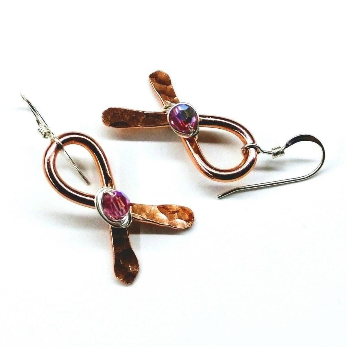 Copper Breast Cancer Awareness Ribbon Earrings by Alexa Martha Designs