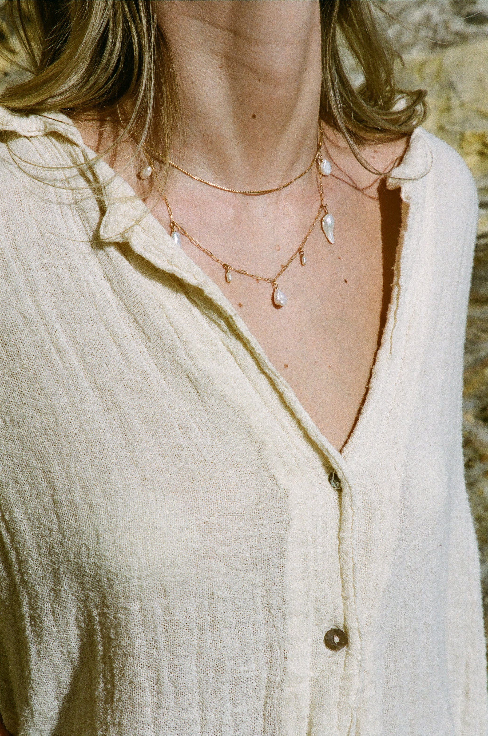 Fulfilled by our friends at Urth and SeaThe Daydream Pearl Necklace is a beautiful way to express your unique daydreams and aspirations. Crafted from a mix of unique pearls, this necklace is a perfect reminder of life's limitless possibilities. Each pearl representing a little daydream, you can wear this necklace...