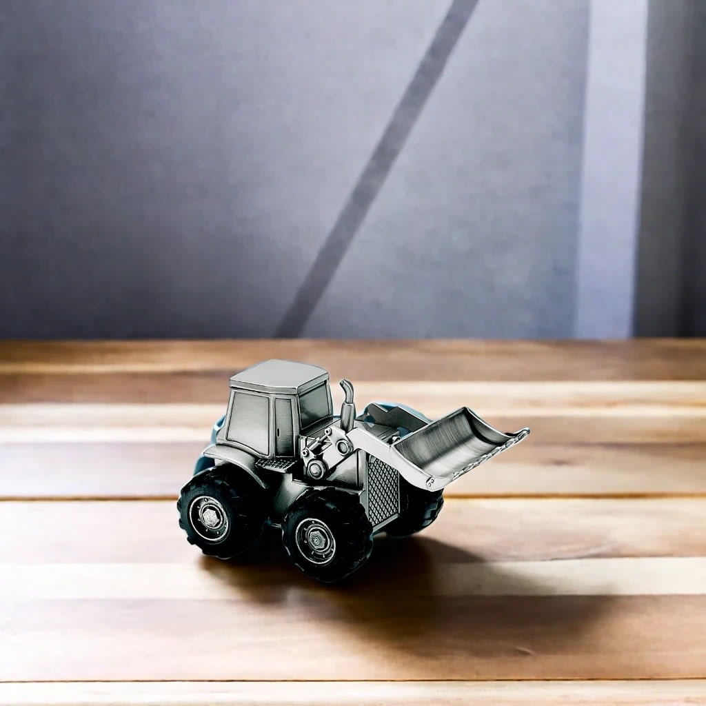 Fulfilled by our friends at Creative GiftsLoad up on the savings when you give our "Front Loader" bank as your next gift. Our front loader bank is manufactured in a non-tarnish, brushed pewter finish and is crafted with amazing details including working rubber tires and a moveable scoop. Kids of...