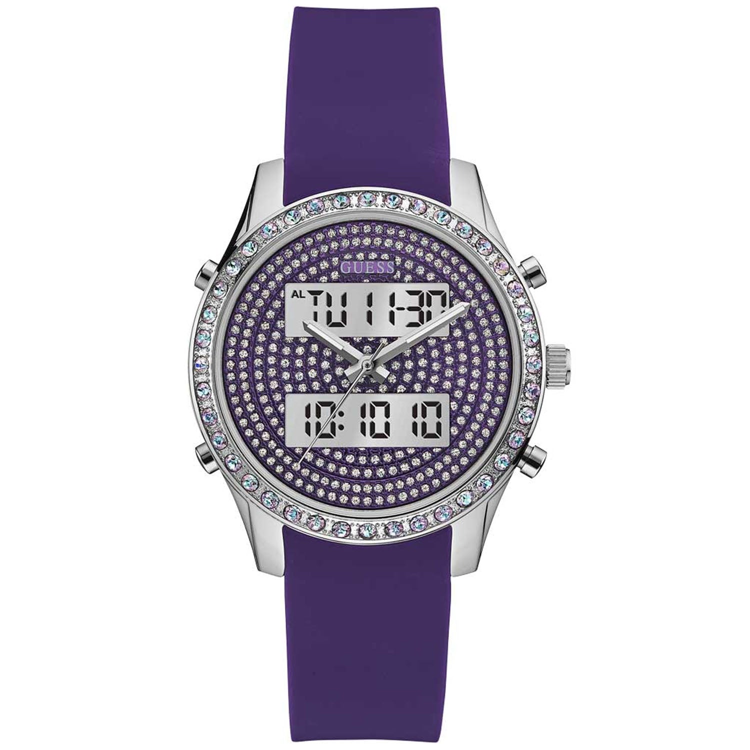 Guess Women's Digital Crystals Purple Dial Watch - W0818L1 by Balec Group