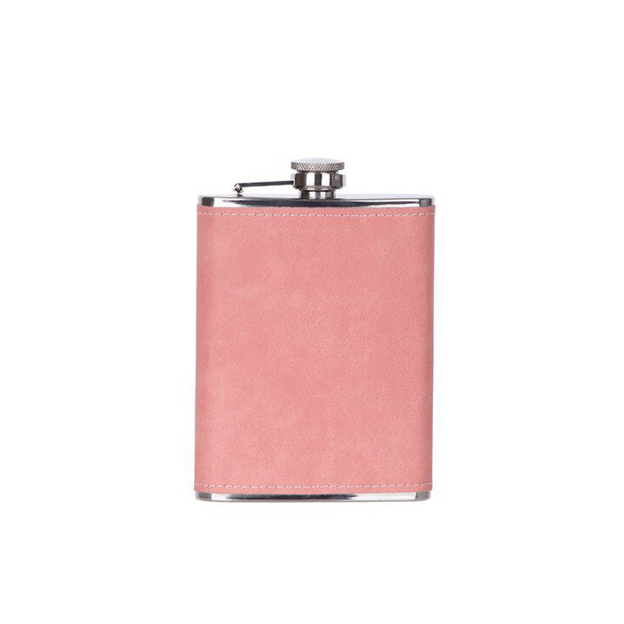 Fulfilled by our friends at Creative GiftsSip in style with our Pink Leatherette-covered steel flask. At 5.25" H, it's perfect for your pocket or purse. Laser-engravable, hinged top, and gift boxed. Features: 8oz capacity Stylish pink Leatherette cover Compact size: 5.25" H Laser engraveable (engraving appears in black) Hinged top...