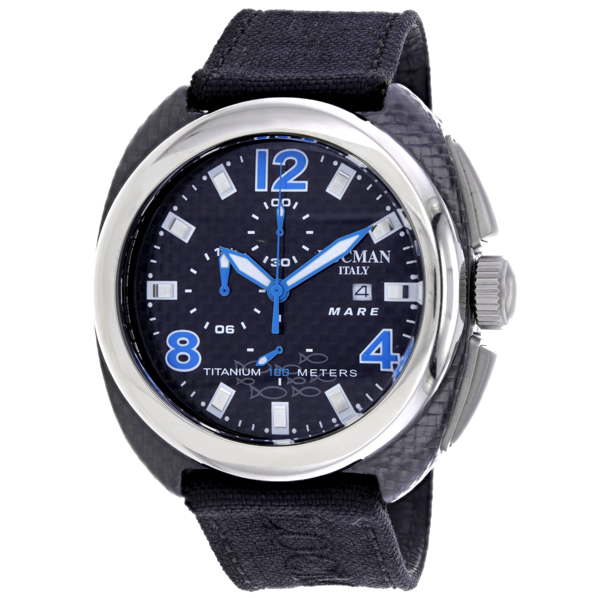 Titanium Carbon case, Leather strap, Black dial, Quartz movement, Scratch resistant mineral, Water resistant up to 10 ATM - 100 meters - 330 feet