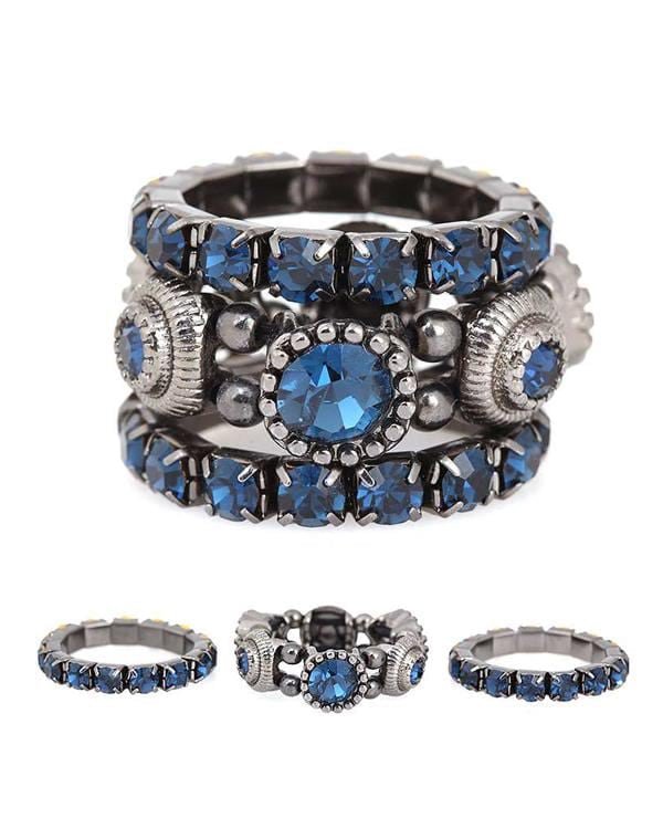 Montana Blue Crystal Stretch Ring Set by Fashion Hut Jewelry