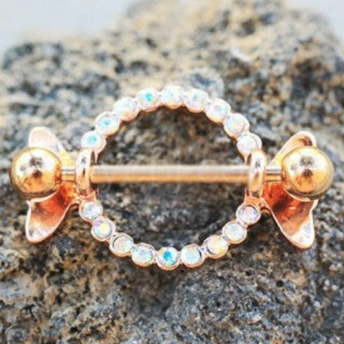 Fulfilled by our friends at Fashion Hut Jewelry• Candy shaped Nipple Shield / Nipple Jewelry• Rose Gold Plated• Multiple Aurora Borealis CZ around the candy• Barbell Thickness : 14GA | 1.6mm• Barbell Length : 19" | 3/4mm• Ring Inner Diameter (Wearable Size) : 1/2" | 12.5mm• Candy Size : 22...