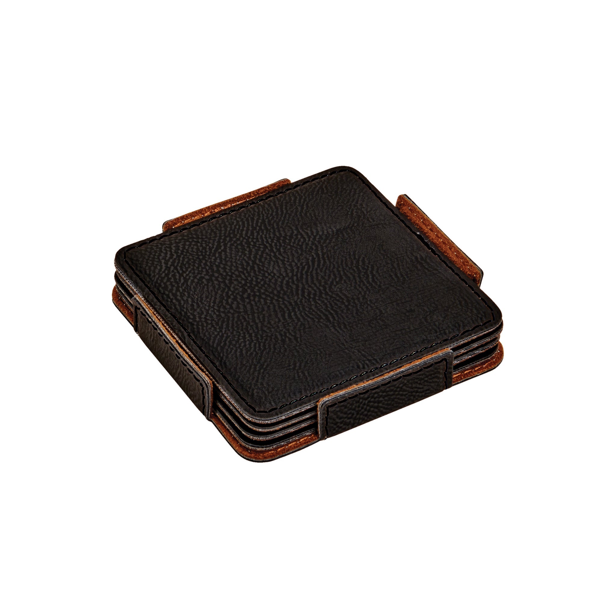 Fulfilled by our friends at Creative GiftsProtect surfaces with a set of 4 black leatherette coasters.