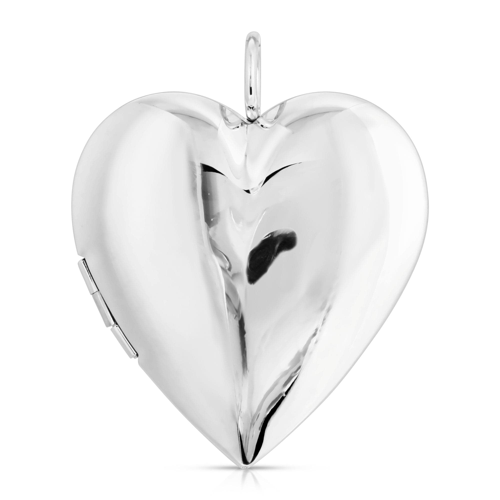 Fulfilled by our friends at eklexicLarge Hamilton Locket is recycled brass plated Rhodium-Silver.Heart Locket Measures 1.75" long x 1.56" wideHandmade in the USA