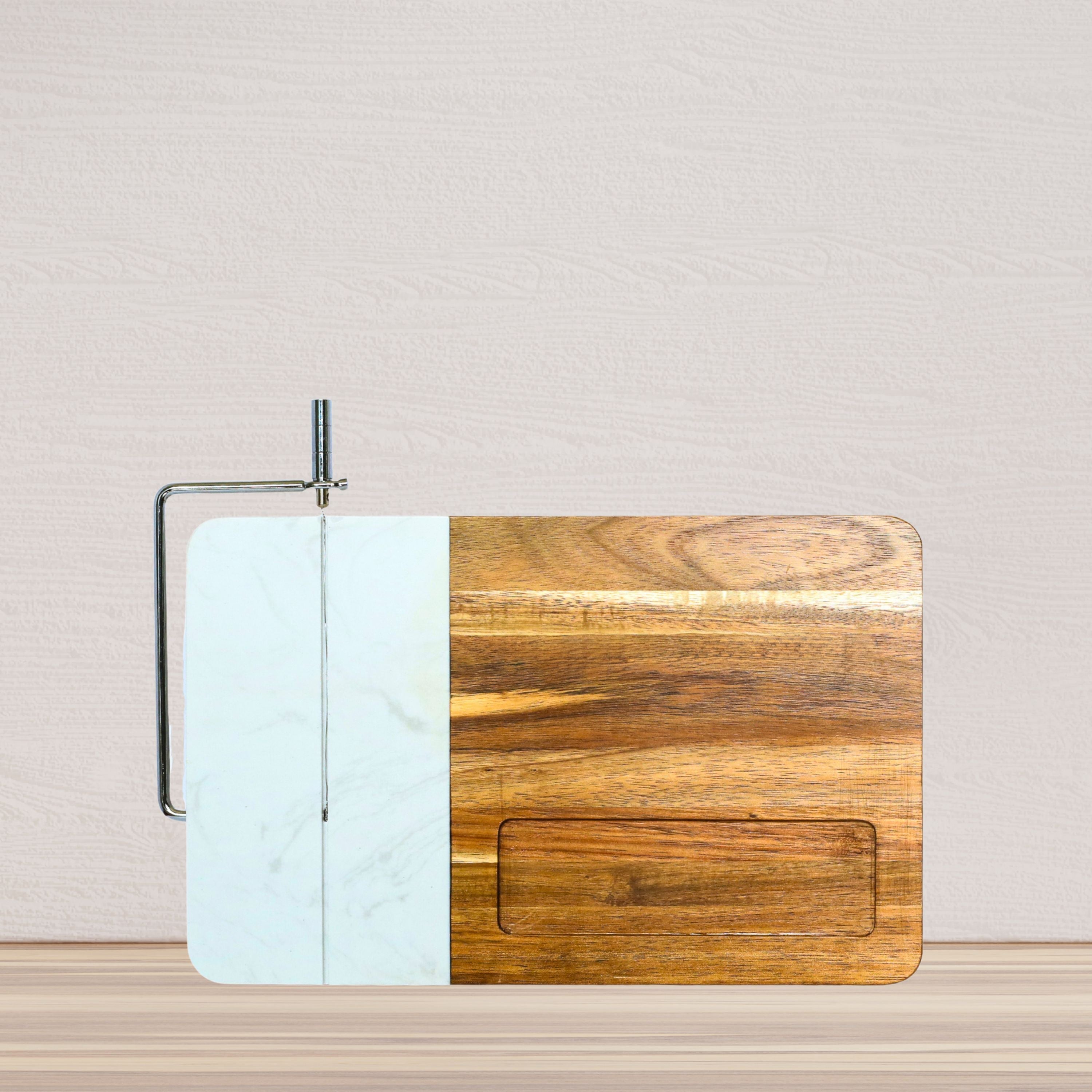 Enhance your kitchen with our White Marble & Acacia Wood Slicer (12.5" x 8")
