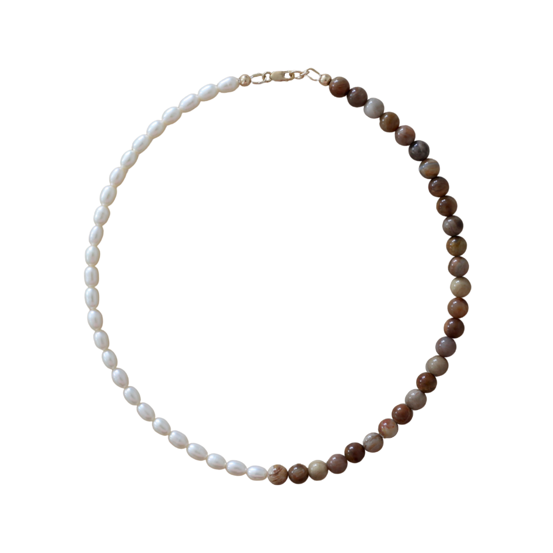 Fulfilled by our friends at Urth and SeaFreshwater Pearls, Petrified Wood Beads, .925 sterling silver or 14k gold-filled.
