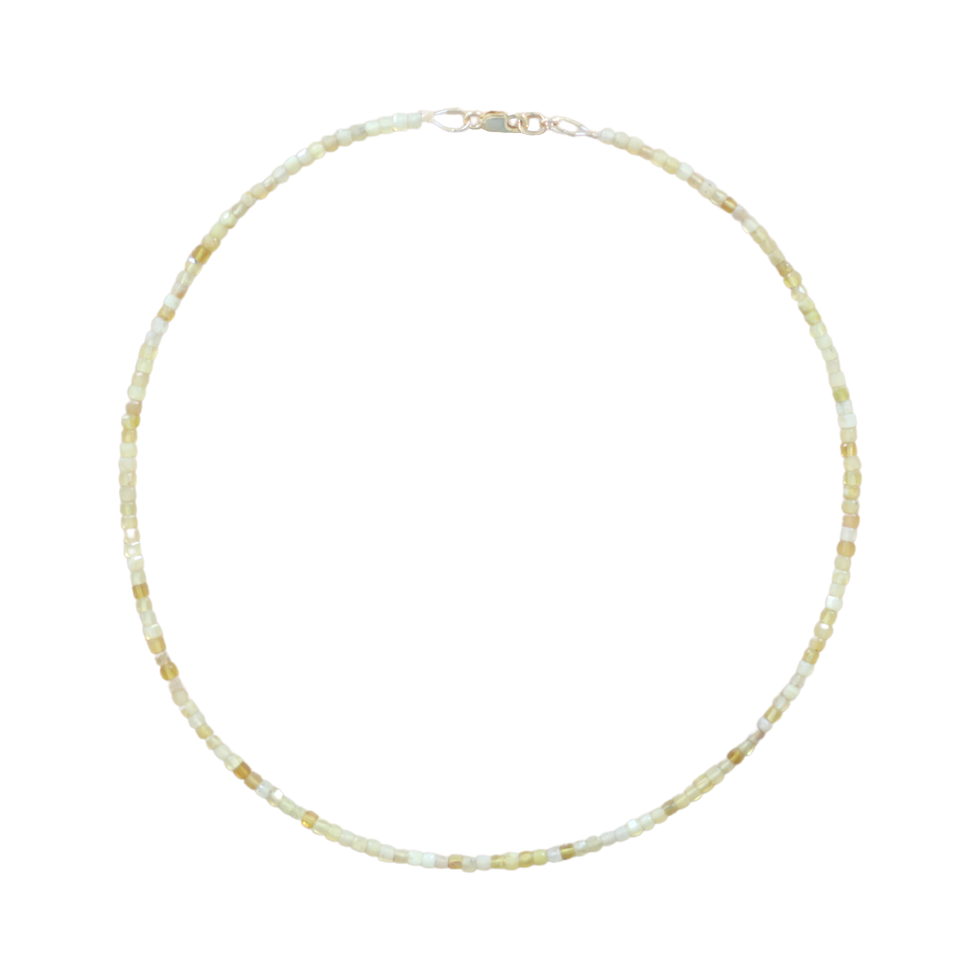 Fulfilled by our friends at Urth and SeaShimmery, smoky, iridescent natural yellow opals are the star in this necklace.