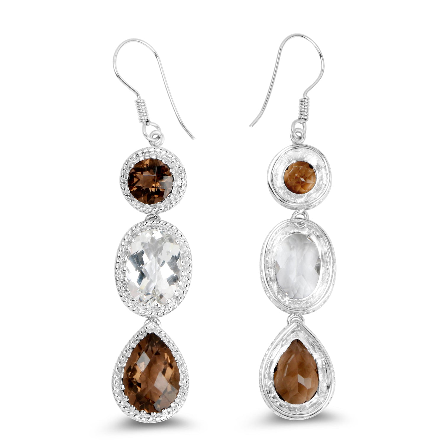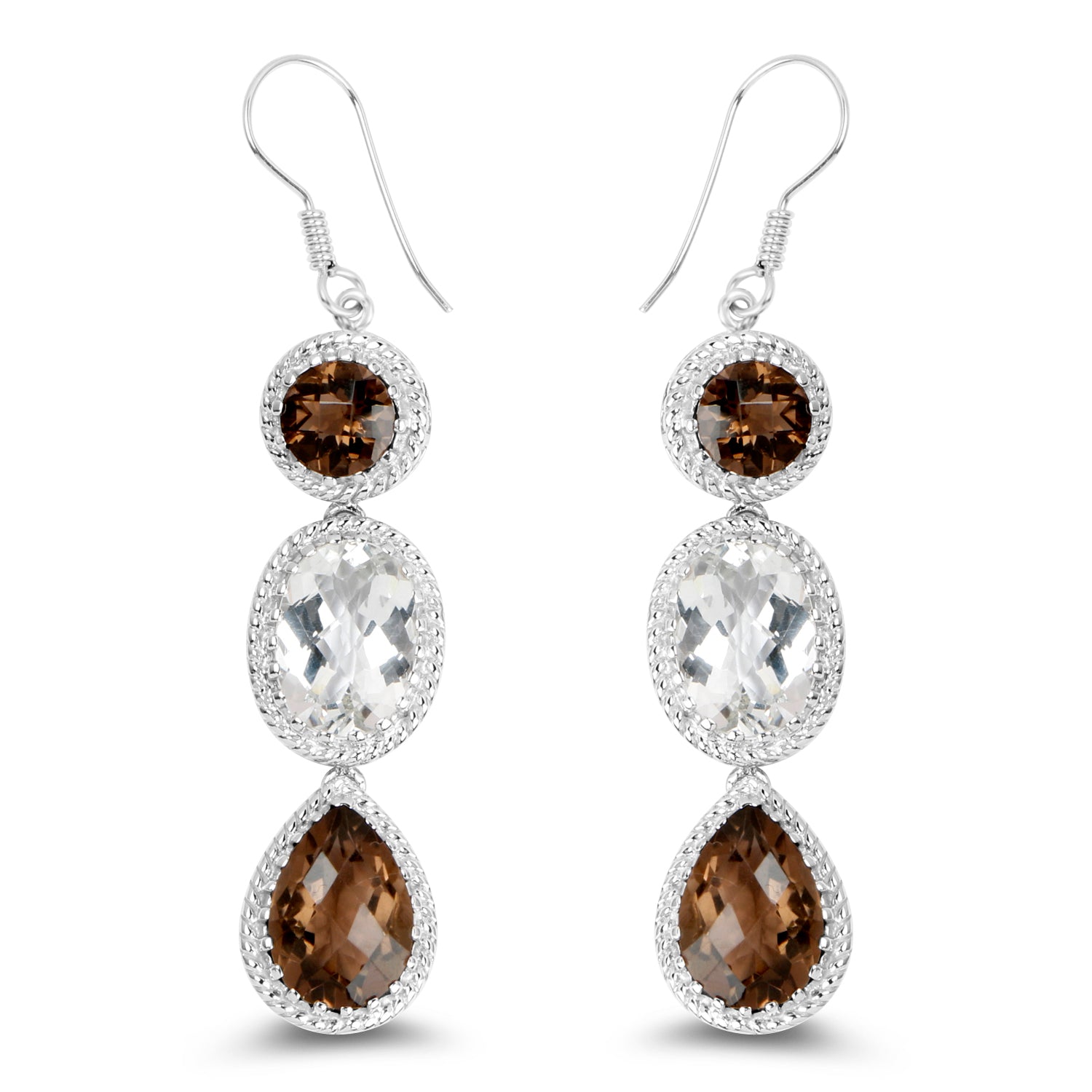 24.84 ct. Genuine Smoky Quartz .925 Sterling Silver Earrings