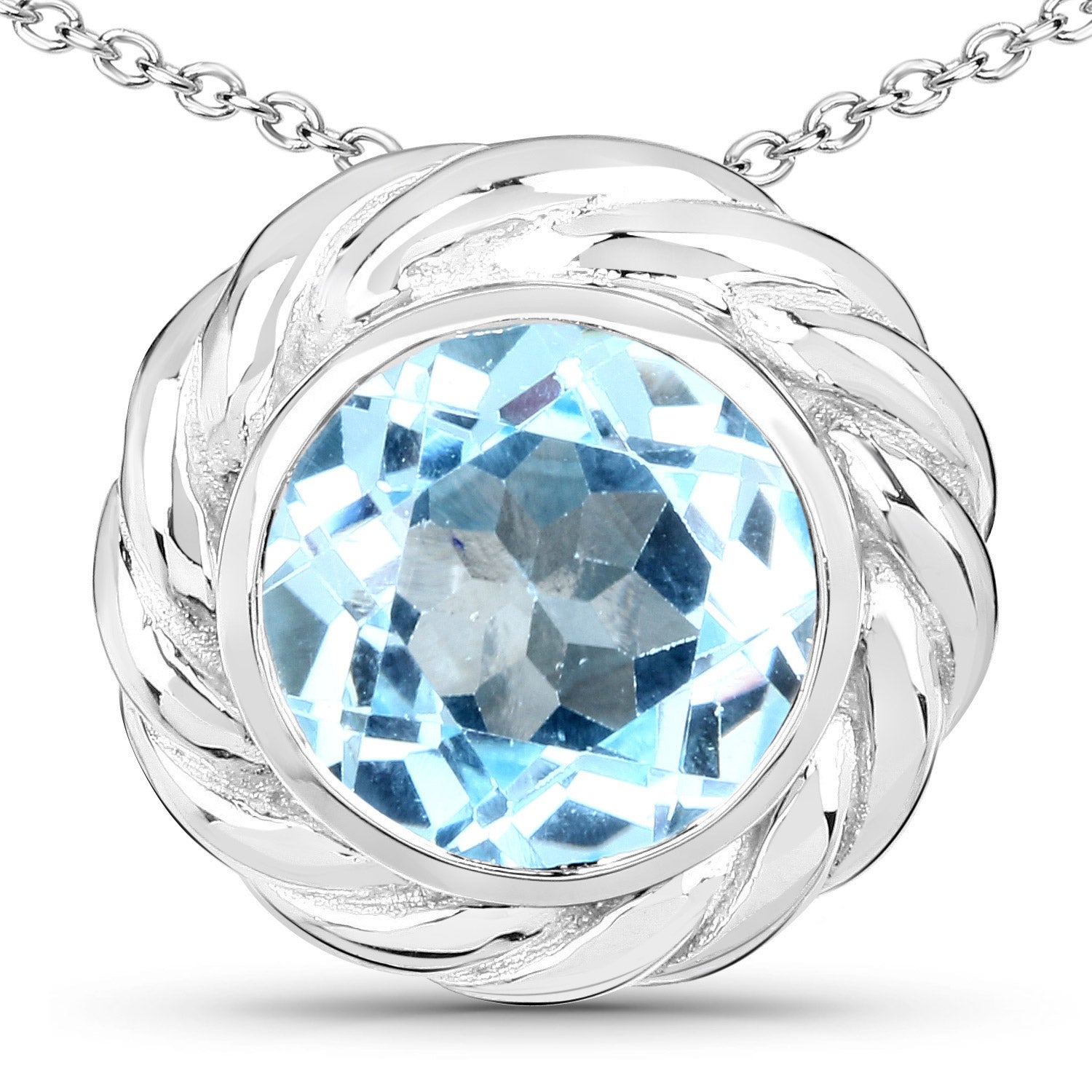 4.00 Carat Genuine Blue Topaz .925 Sterling Silver Pendant Topaz Blue:Round/10.00mm 1/4.00 ct.w