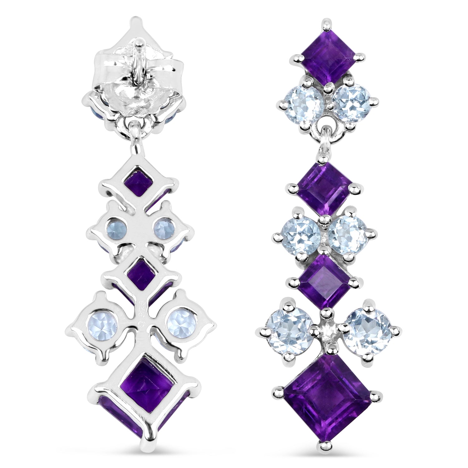 4.94 Carat Genuine Amethyst & Blue Topaz .925 Sterling Silver Earrings