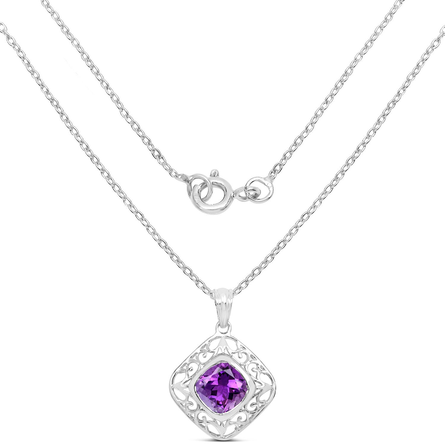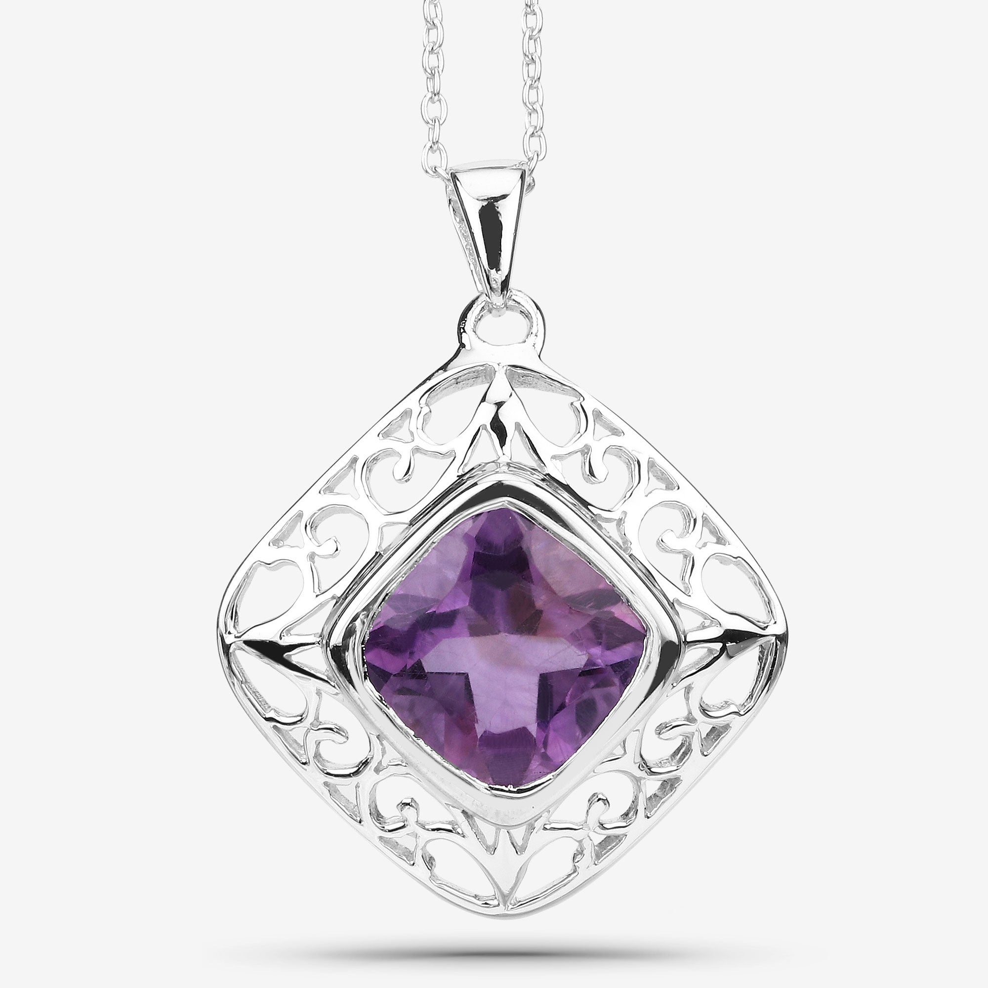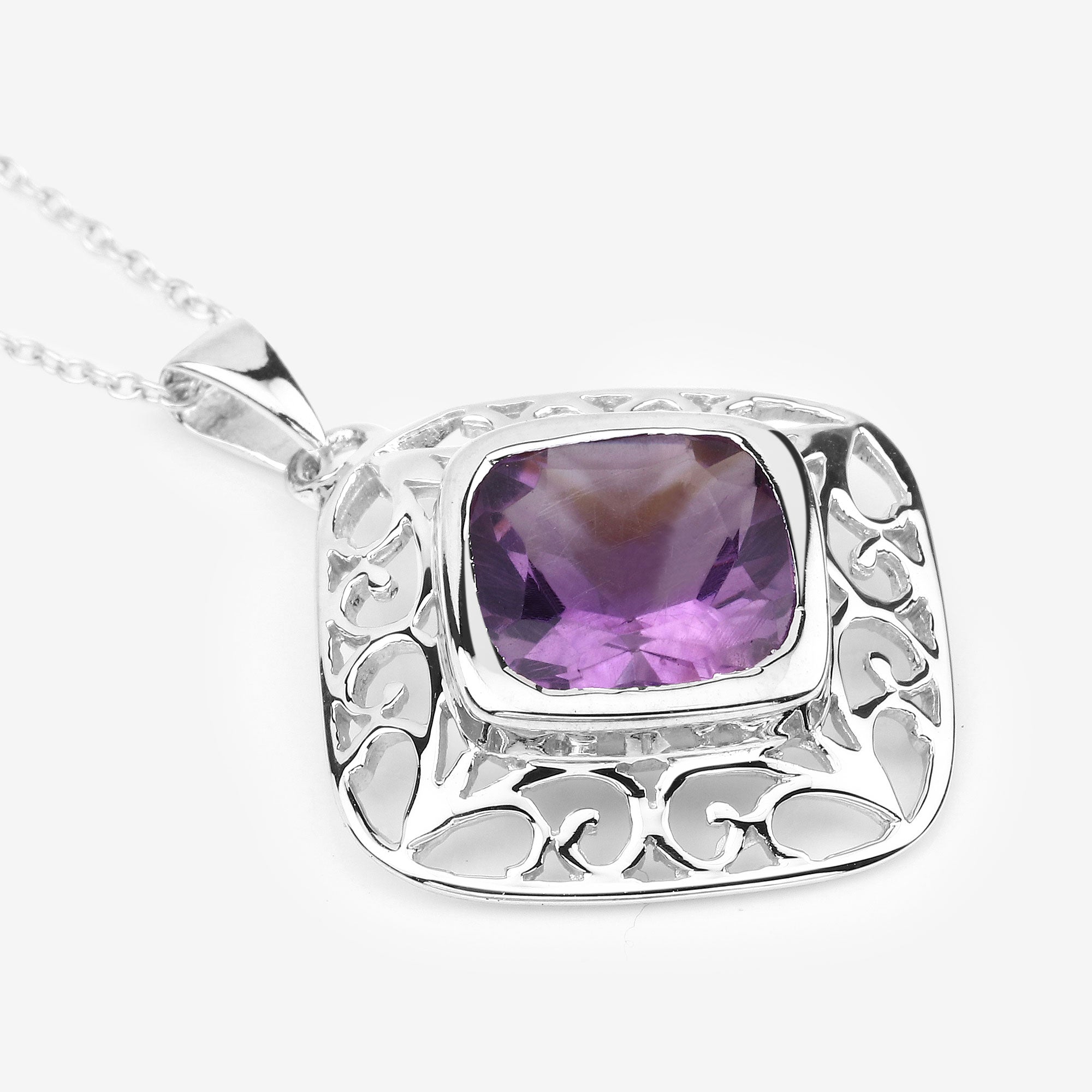 5.10 Carat Genuine Amethyst .925 Sterling Silver Pendant Amethyst:Cushion/11.00mm 1/5.10 ct.w